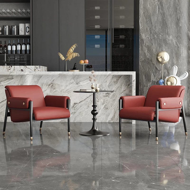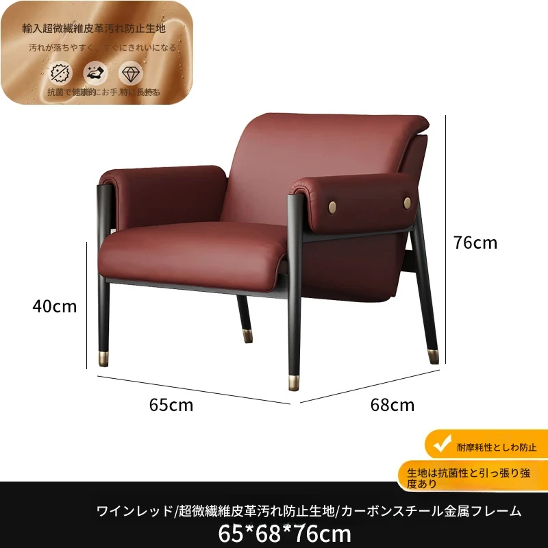 ソファチェア【ワインレッド/超微細合成皮革/カーボンスチール脚】