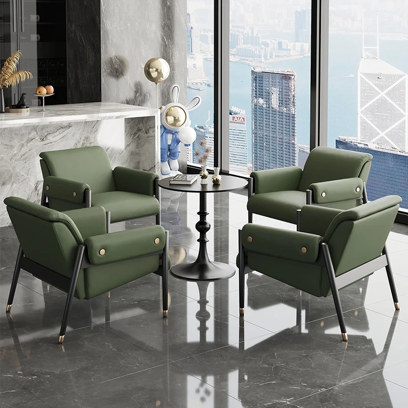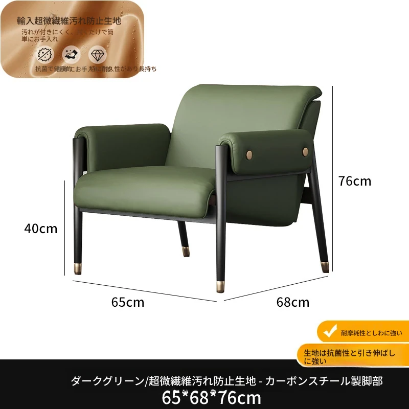 ソファチェア【ダークグリーン/超微細合成皮革/カーボンスチール脚】