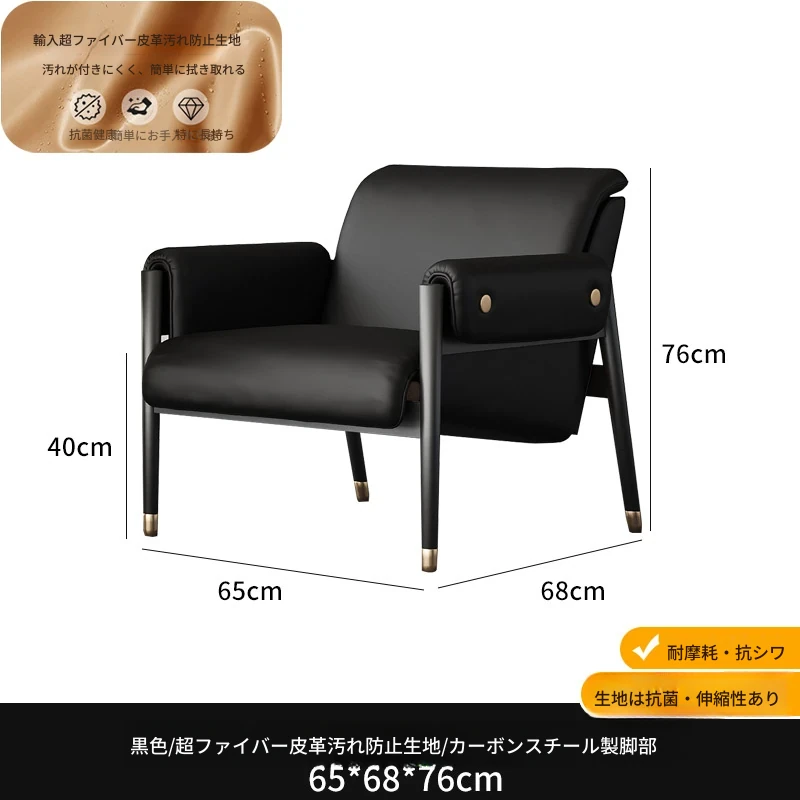 ソファチェア【ブラック/超微細合成皮革/カーボンスチール脚】
