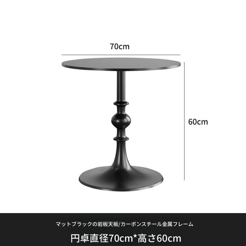 ラウンドテーブル60*60CM【マットブラックスレート天板/カーボンスチール金属フレーム】