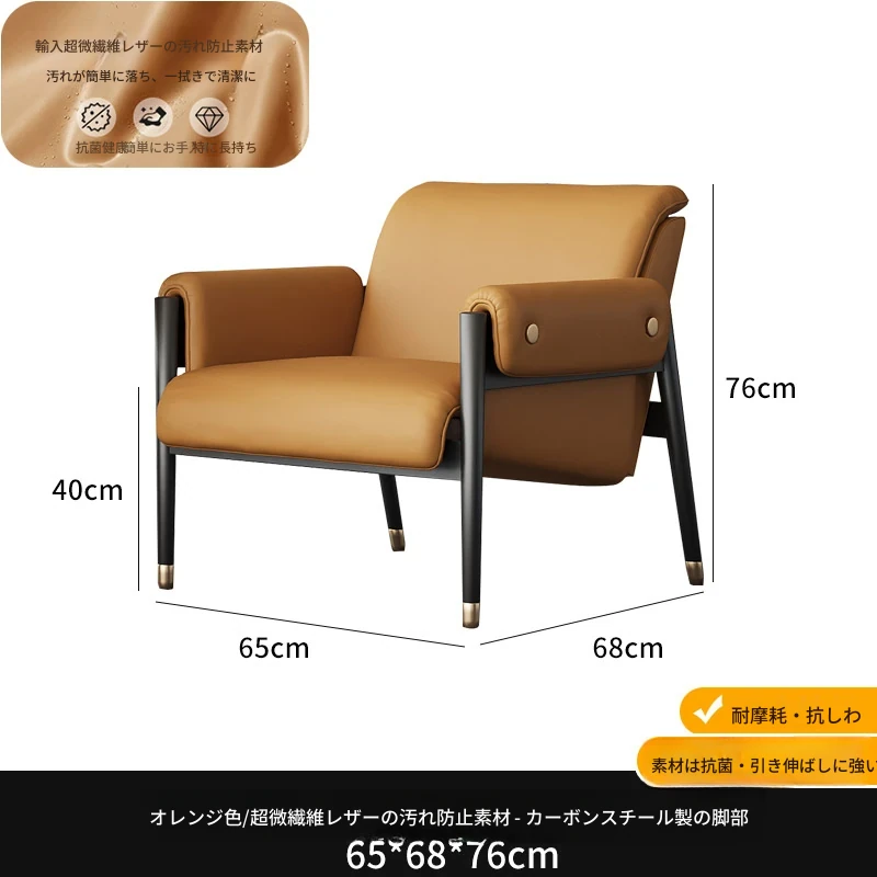 ソファチェア【オレンジ/超微細合成皮革/カーボンスチール脚】