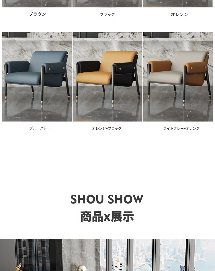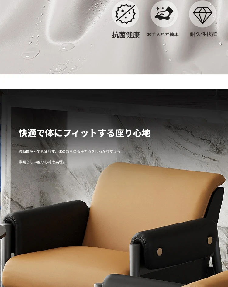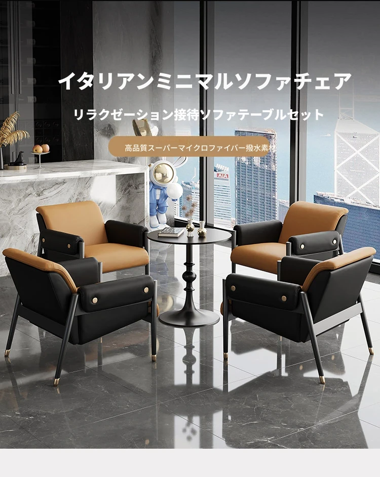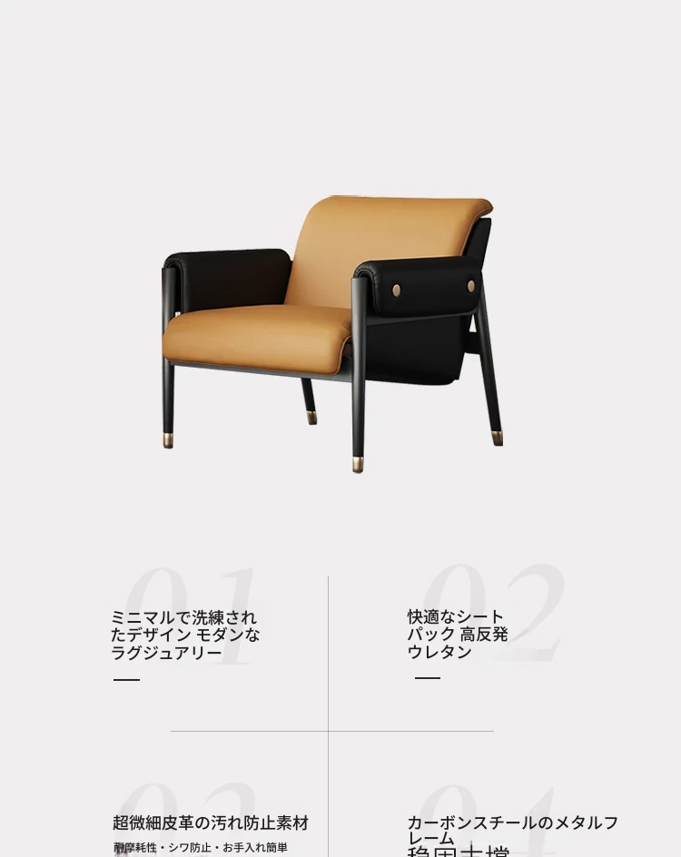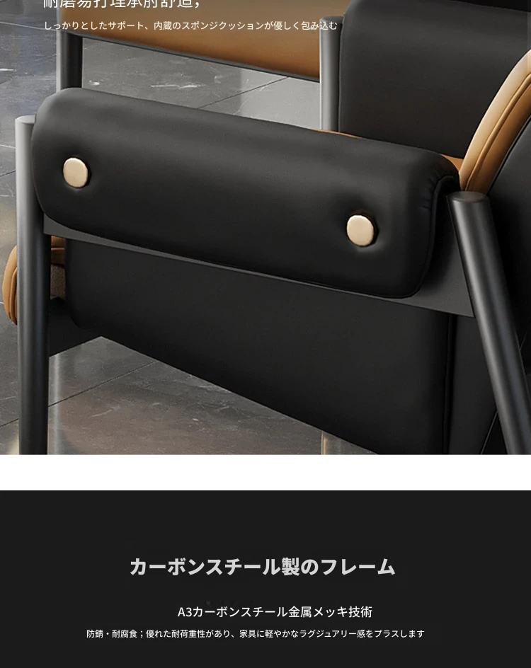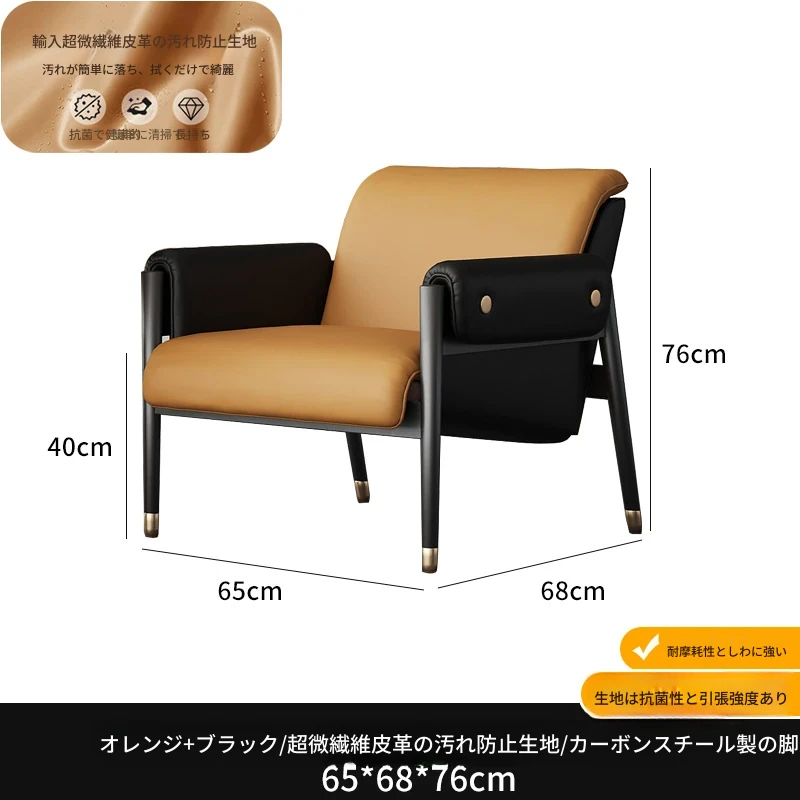 ソファチェア【オレンジ+ブラック/超微細合成皮革/カーボンスチール脚】