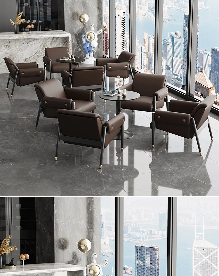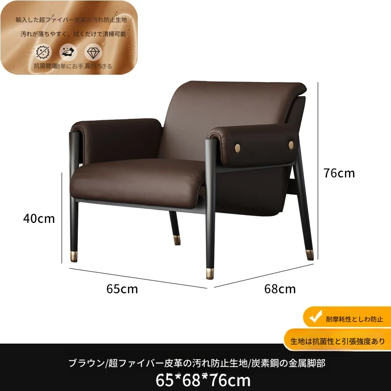 ソファチェア【ブラウン/超微細合成皮革/カーボンスチール脚】