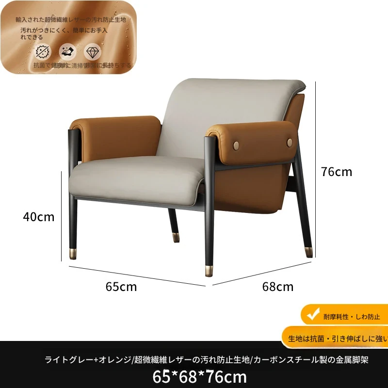 ソファチェア【ミディアムグレー+オレンジ/超微細合成皮革/カーボンスチール脚】