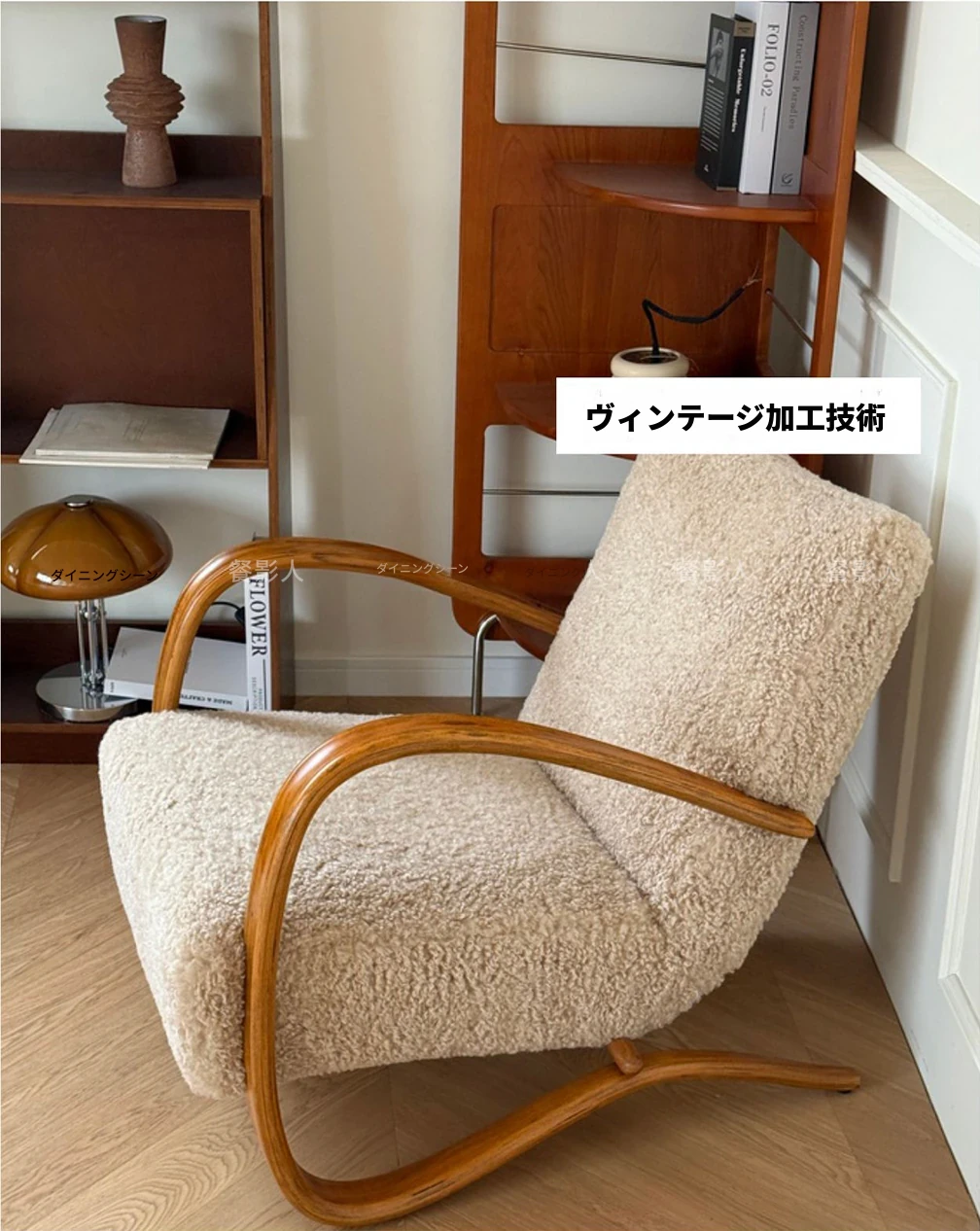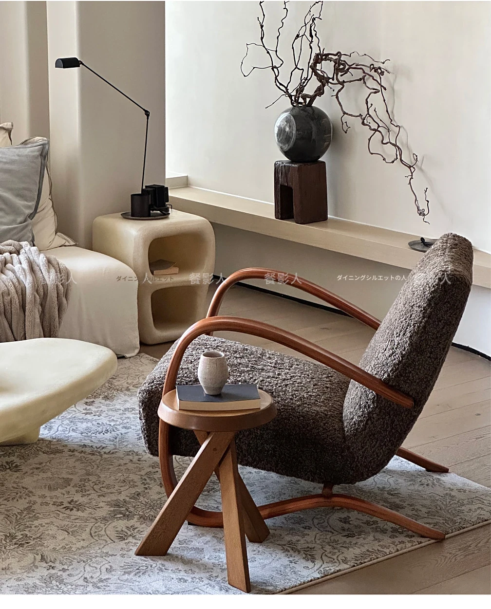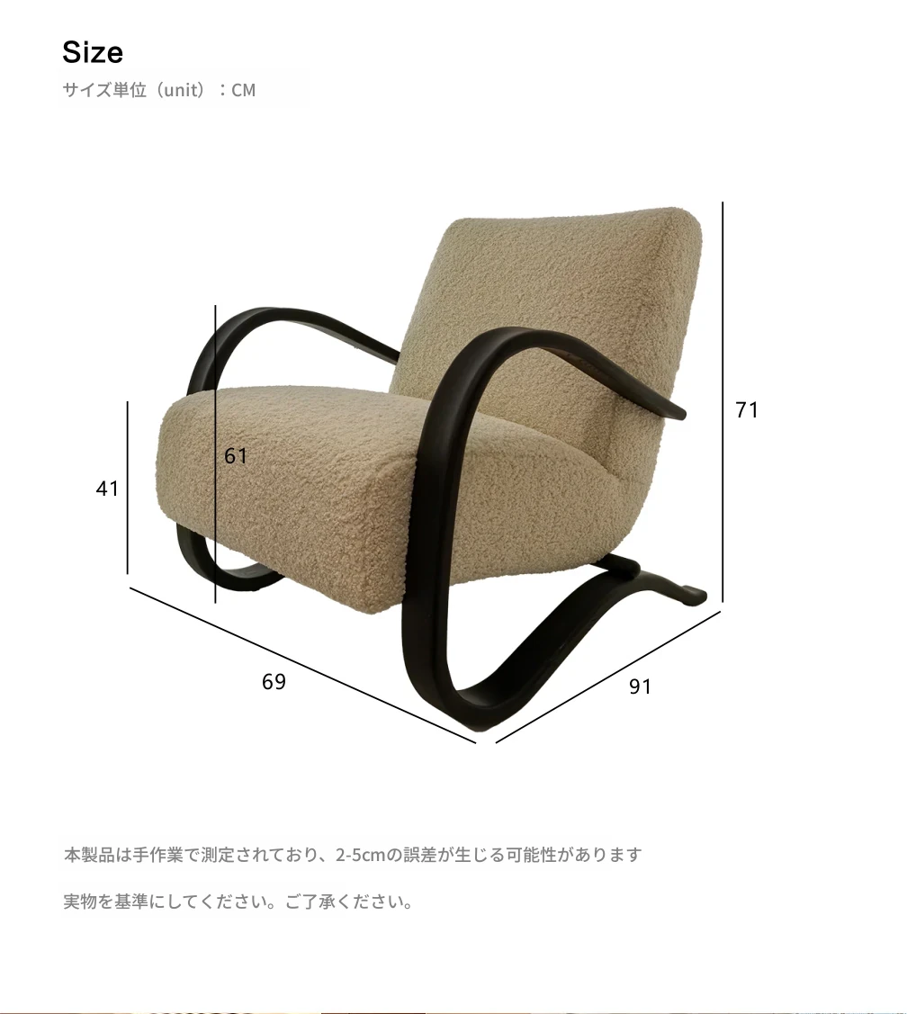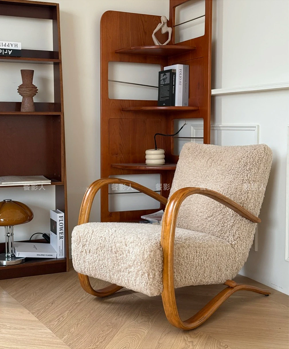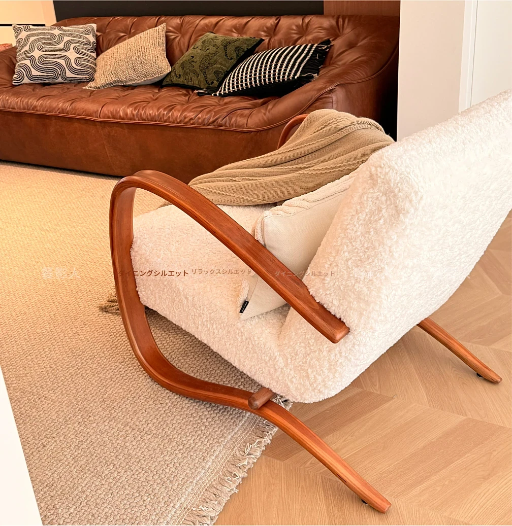 北欧デザインのクリエイティブなフレンチスタイル、ダブルアームのラムの椅子。レトロな雰囲気で、リビングや寝室にぴったりなリラックスチェア!
