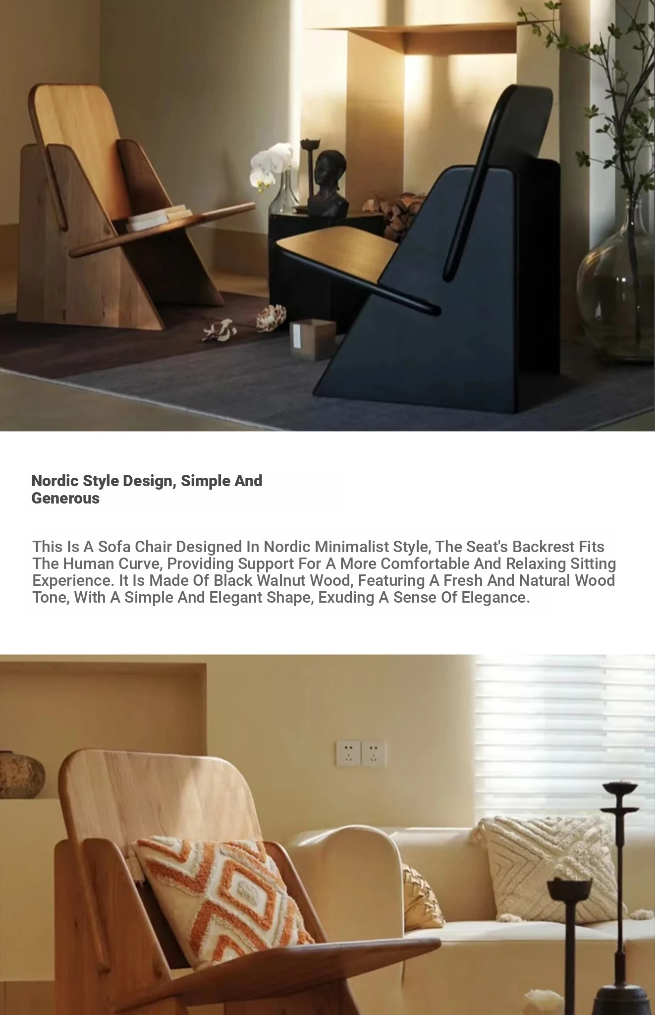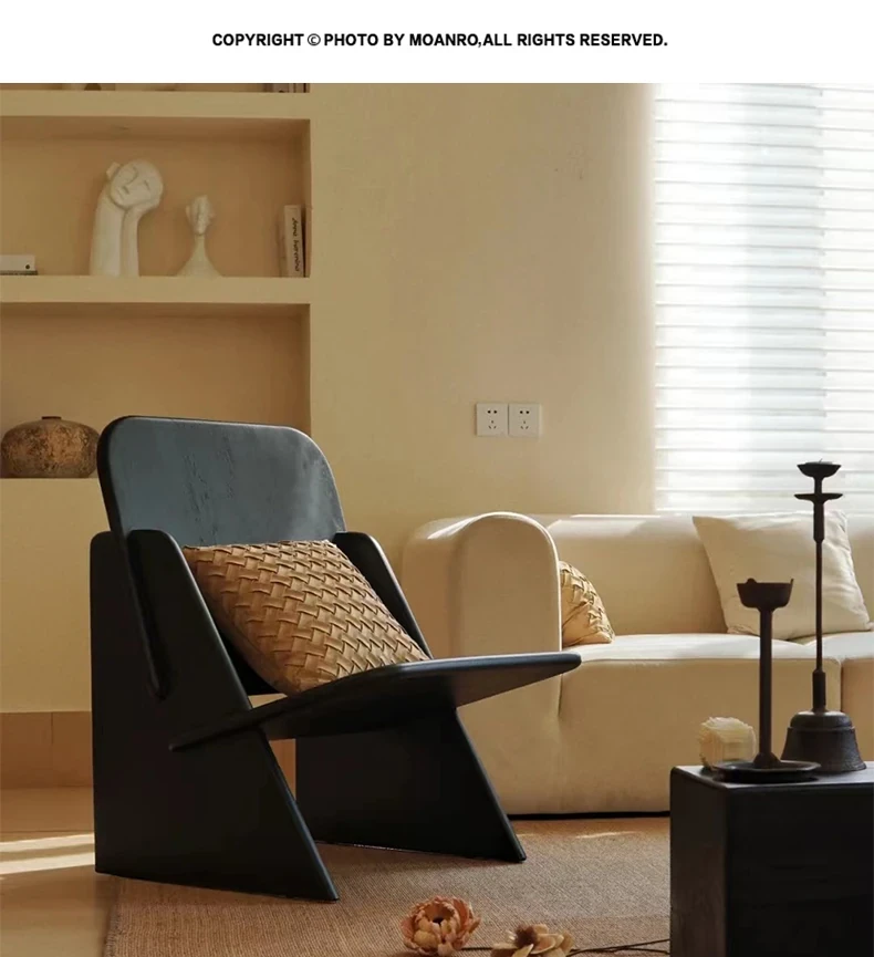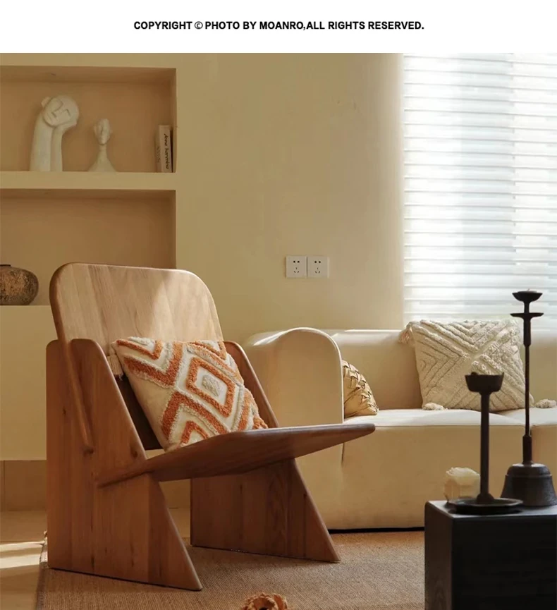 Nordic Minimalist Wabi-Sabi Style Solid Wood Single Sofa Chair for Balcony - Elegant and Cozy Lounge Chair for Modern Home Décor