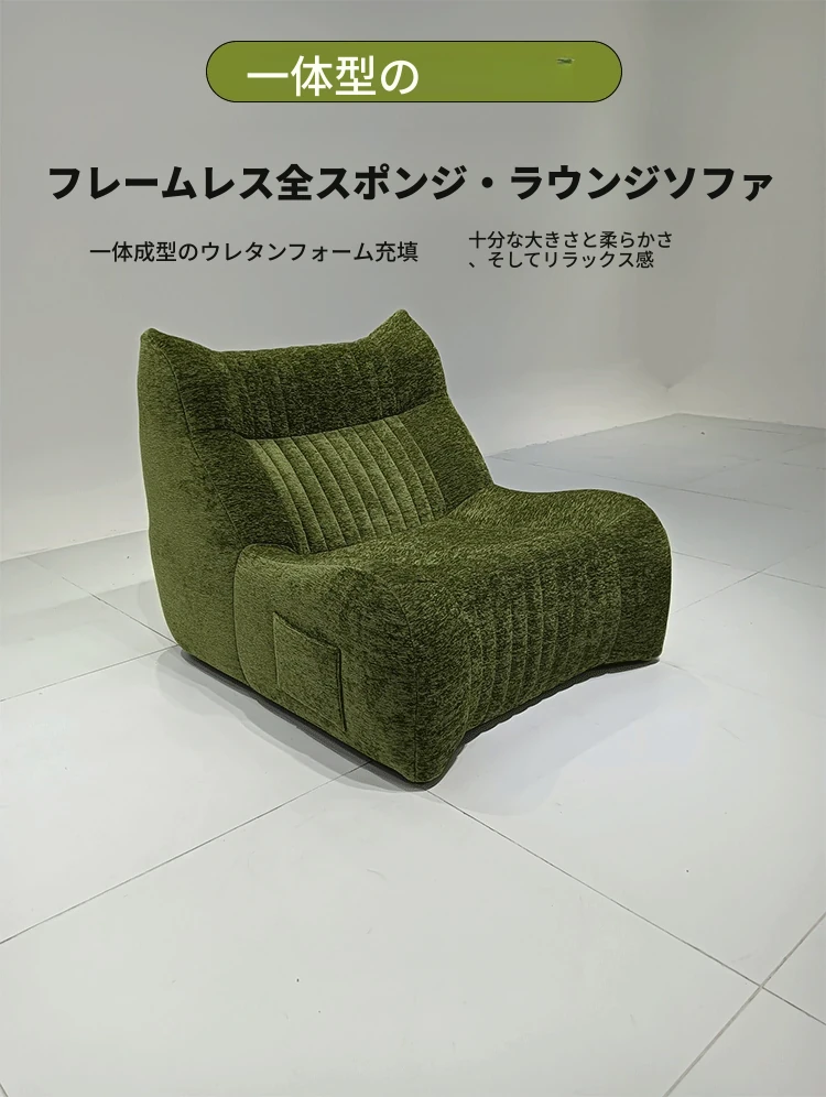 リラックスできる懶人ソファ!寝転んでも寝てもOK!タタミスタイルの小型バルコニー用、休憩に最適なビーズソファ。1人用の窓際ソファで、狭いスペースも有効活用!あなたのくつろぎ時間を演出します。