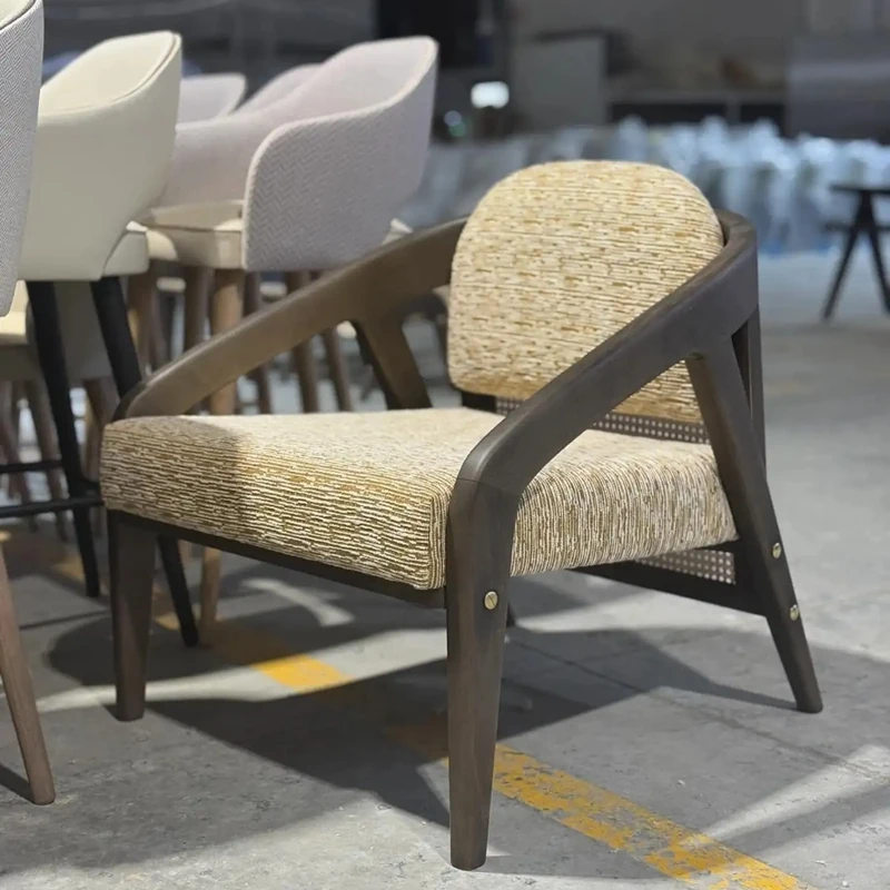 北米産ブラックウォールナット無垢材使用!シンプルで高級感あふれる新中式デザインの布張り一人掛けソファチェア。リビングにぴったりなリラックス空間を演出します!