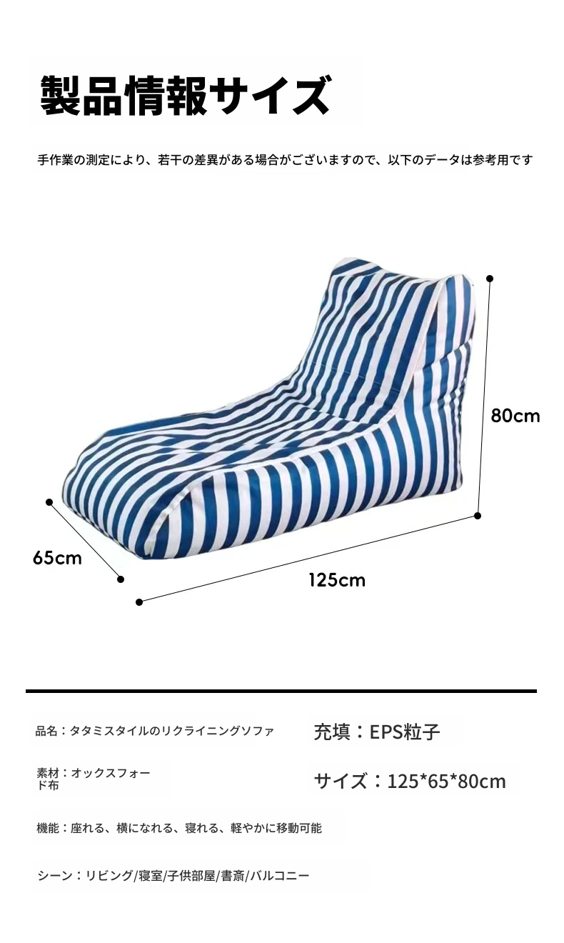 リラックスできる懶人ソファ!寝転んでも寝てもOK!タタミスタイルの小型バルコニー用、休憩に最適なビーズソファ。1人用の窓際ソファで、狭いスペースも有効活用!あなたのくつろぎ時間を演出します。