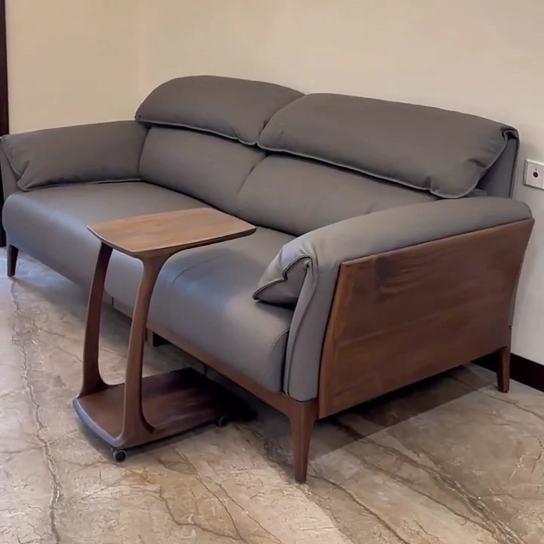 新中式高級北米ブラックウォールナット製ソファ|3人掛け|ホテル・オフィス・リビングに最適な本革家具。洗練されたデザインで、上質なひとときを演出します。