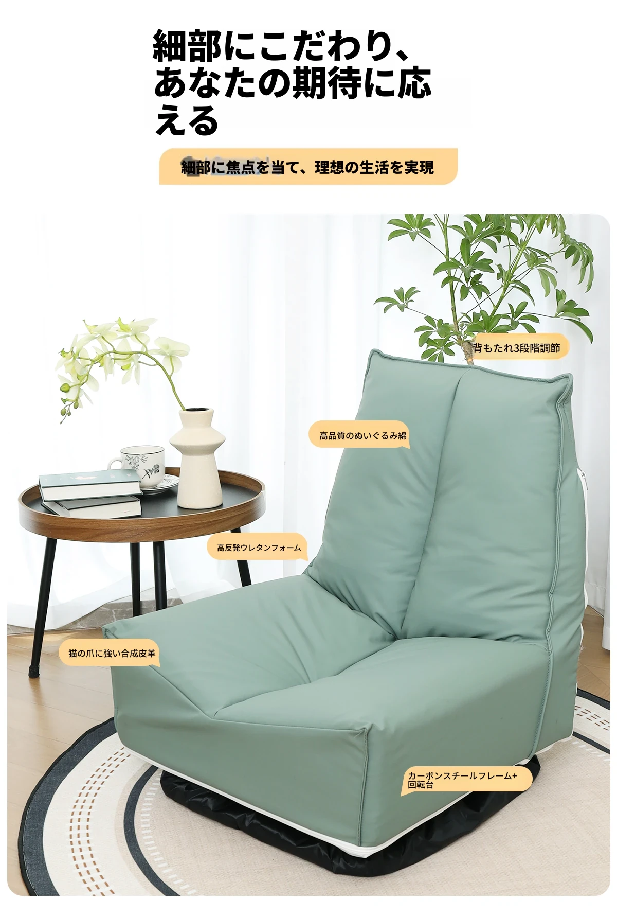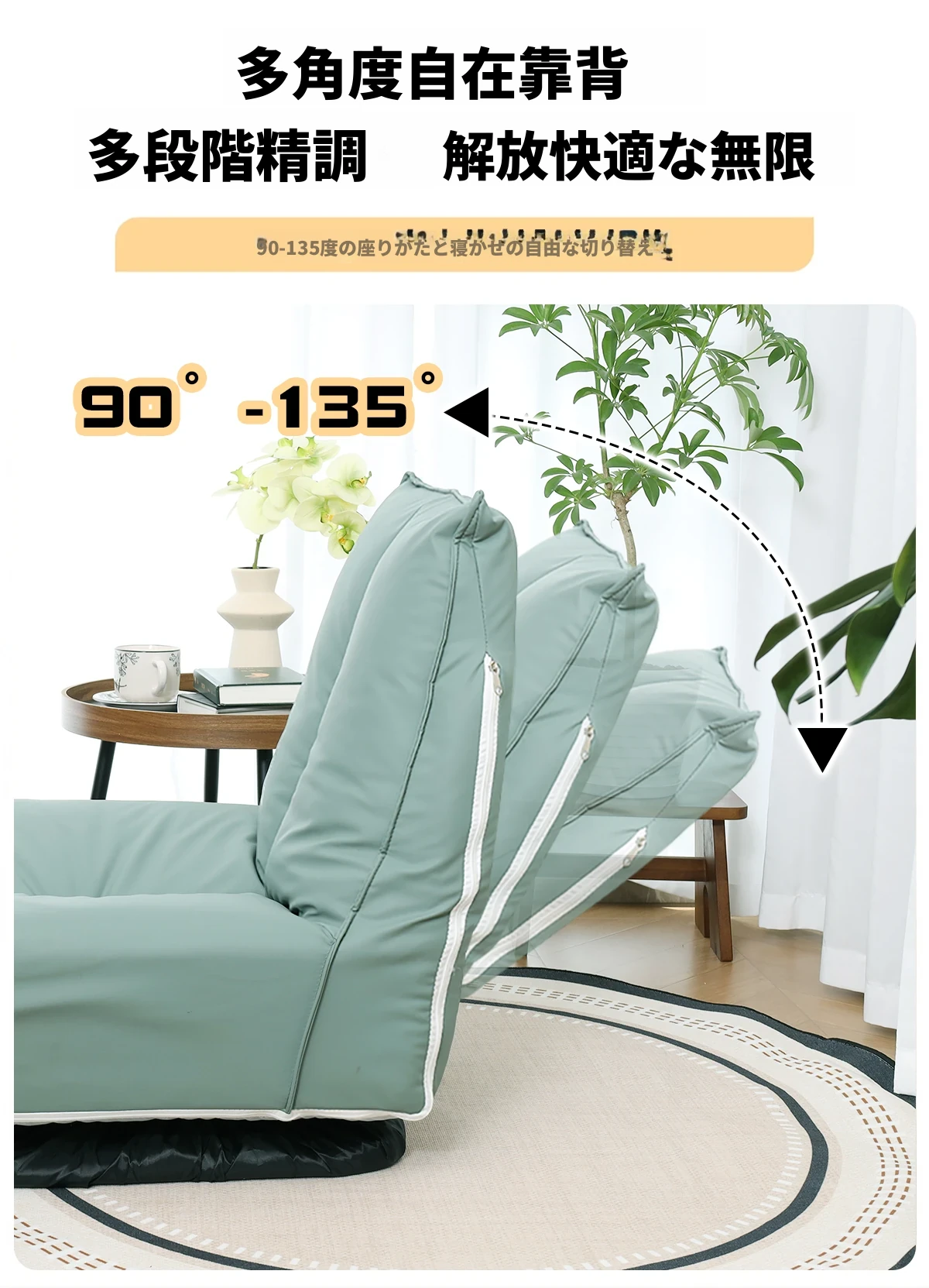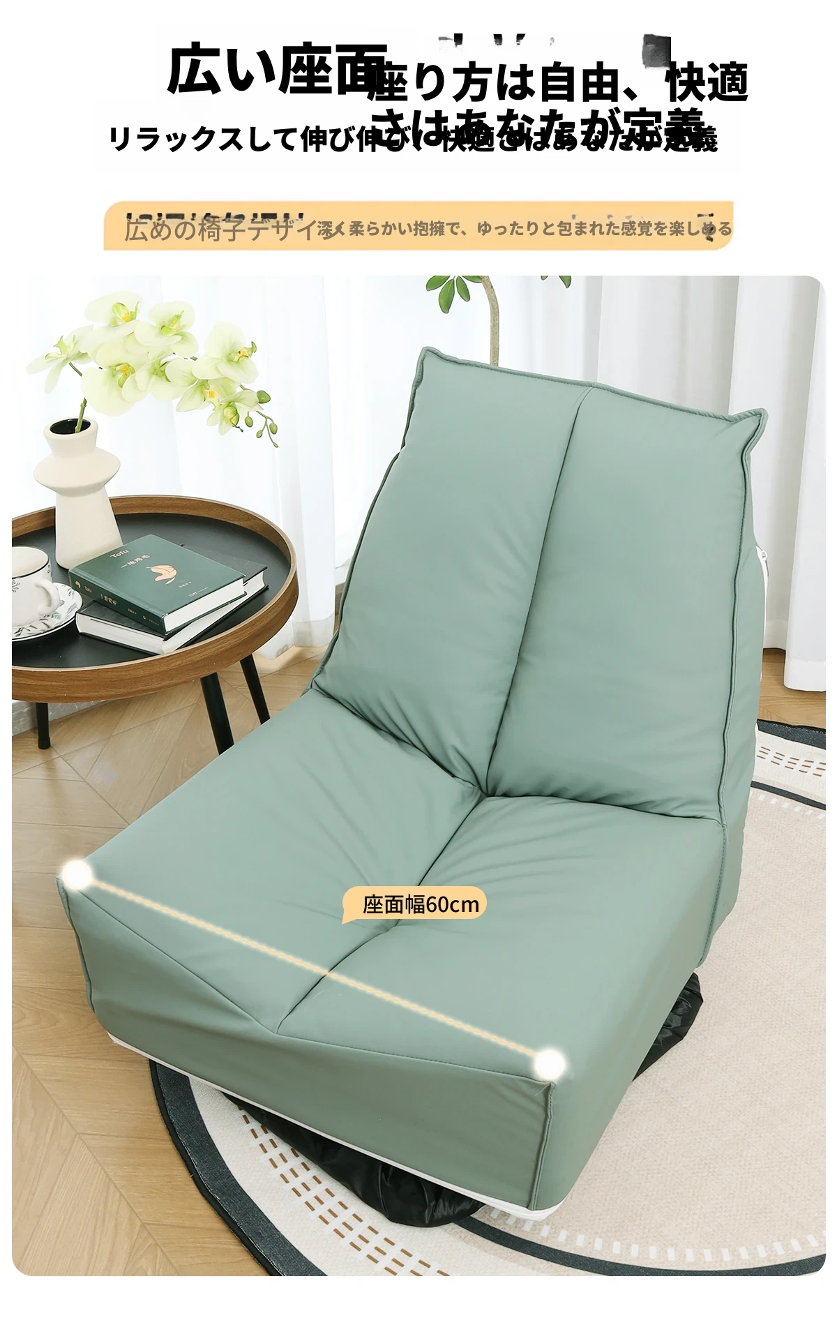 おしゃれで快適なリクライニング一人用ソファ - お子様や学生の読書にも最適!折りたたみ可能で、回転機能付き。書斎やリビングにぴったりのタタミスタイルソファ!