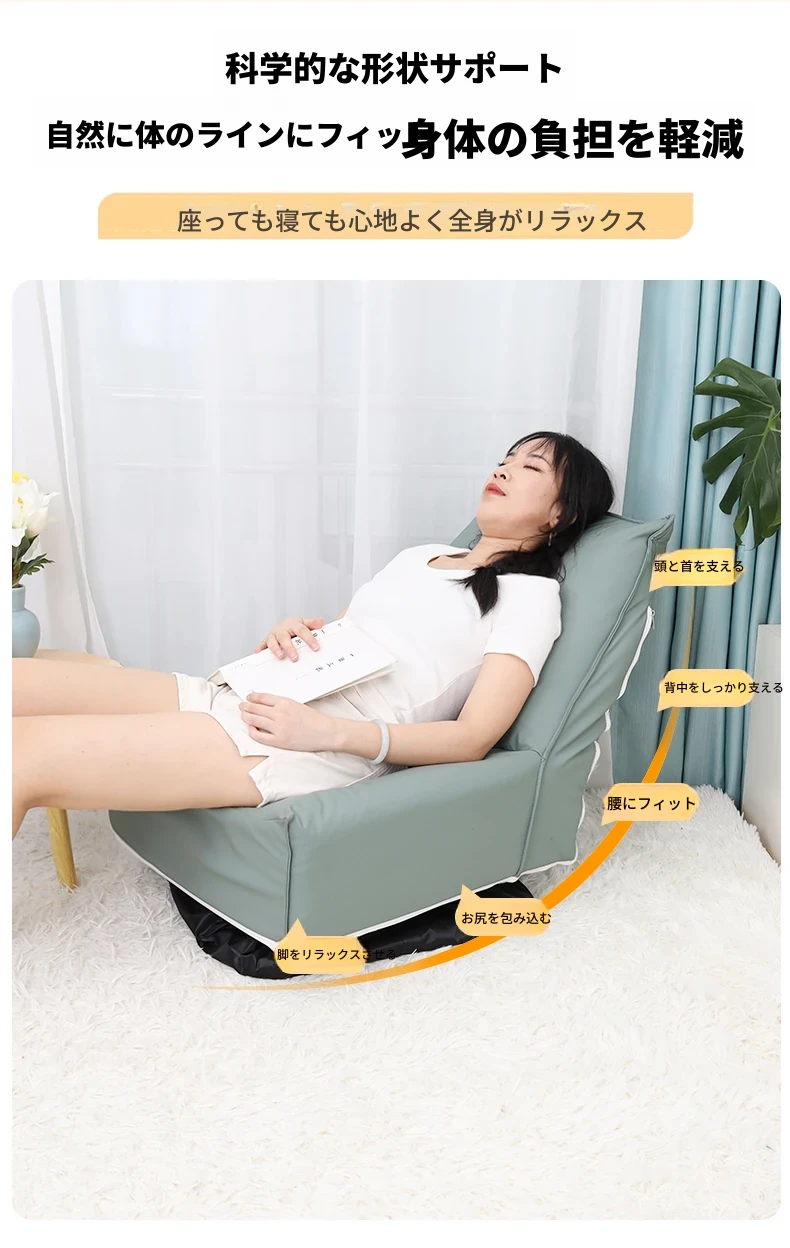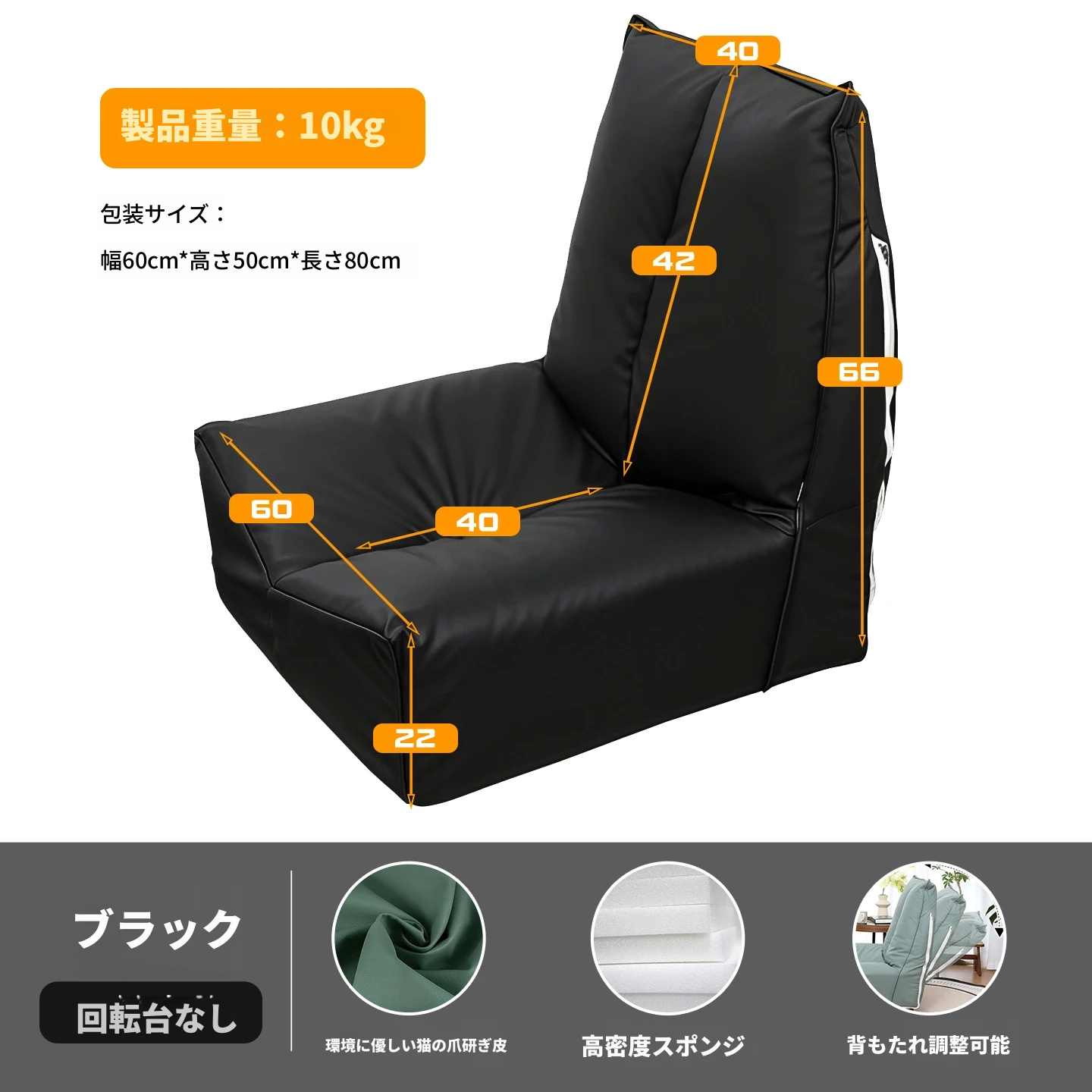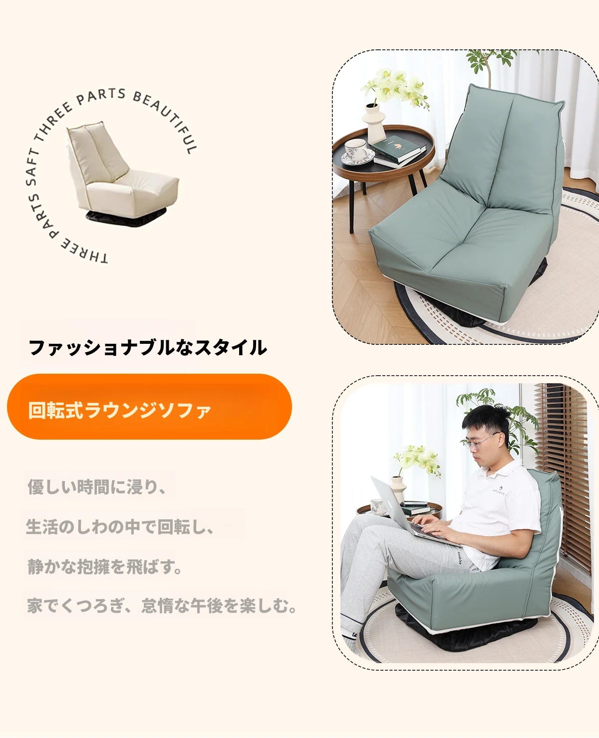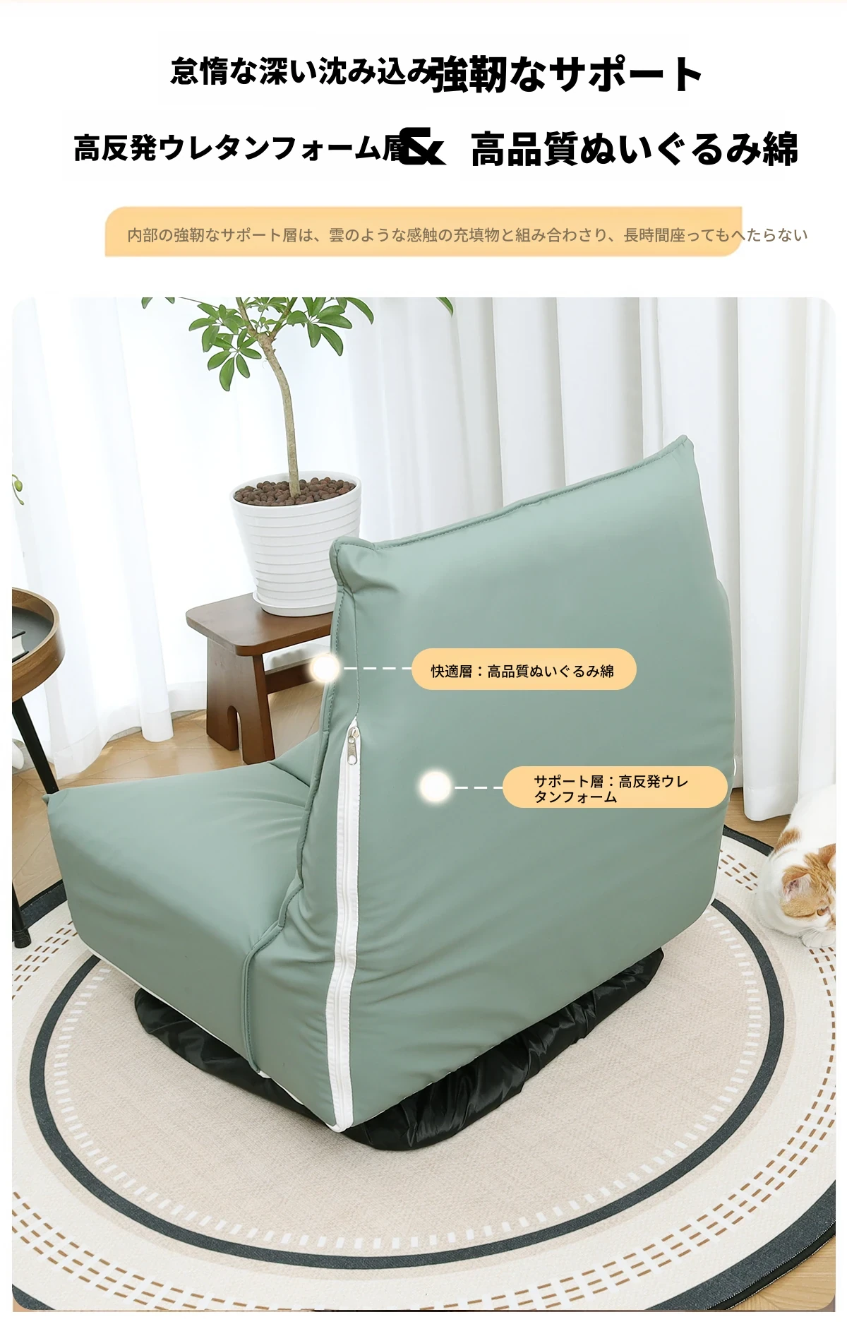 おしゃれで快適なリクライニング一人用ソファ - お子様や学生の読書にも最適!折りたたみ可能で、回転機能付き。書斎やリビングにぴったりのタタミスタイルソファ!