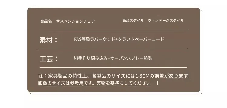 チェリーカラー【FAS級無垢材//組み立て発送】ハンギングチェア
