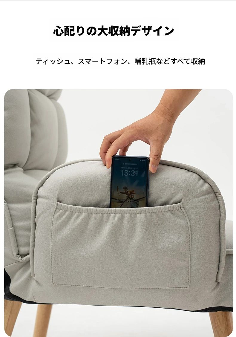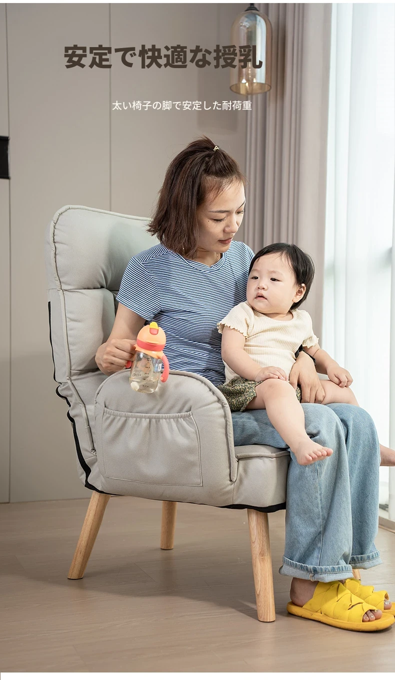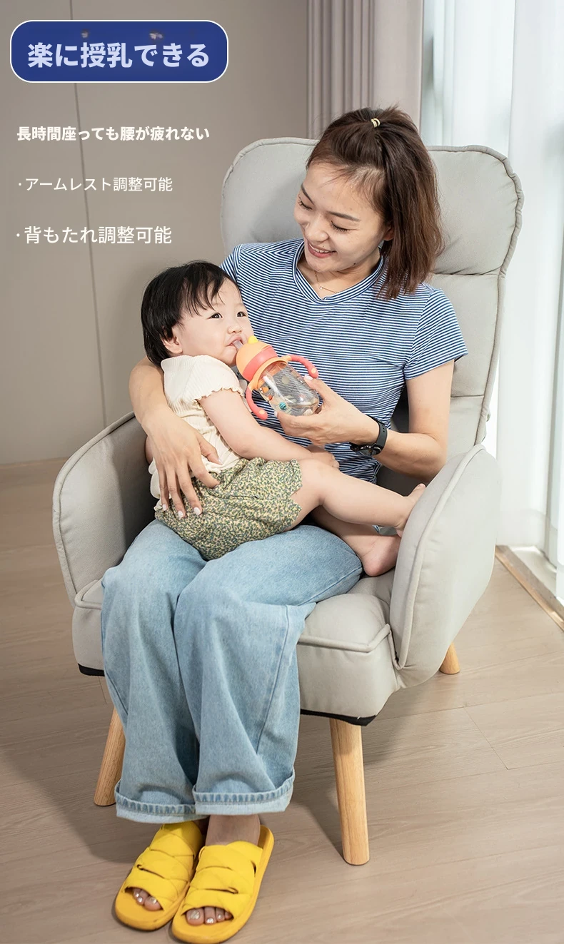 ママのためのリラックスチェア!妊婦さんに最適な背もたれ付き授乳椅子。バルコニーや寝室で使える、ゆったりとくつろげるソファ。快適なひとときをお届けします!