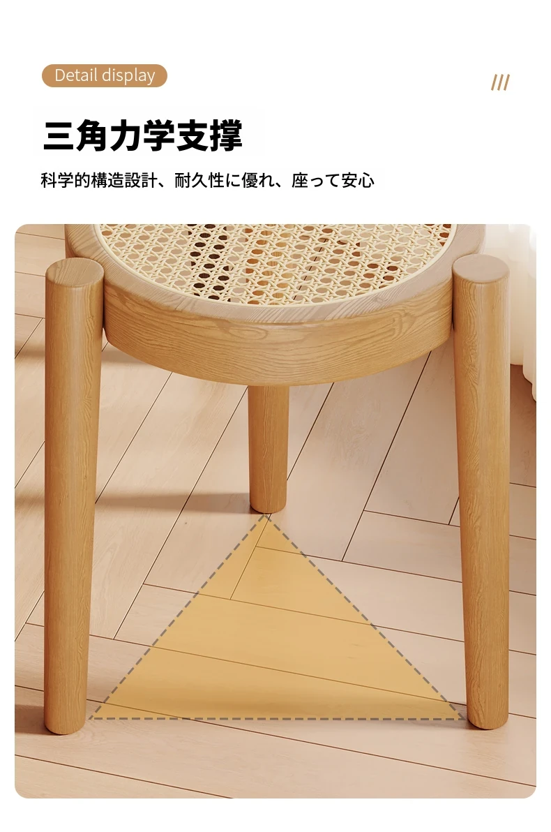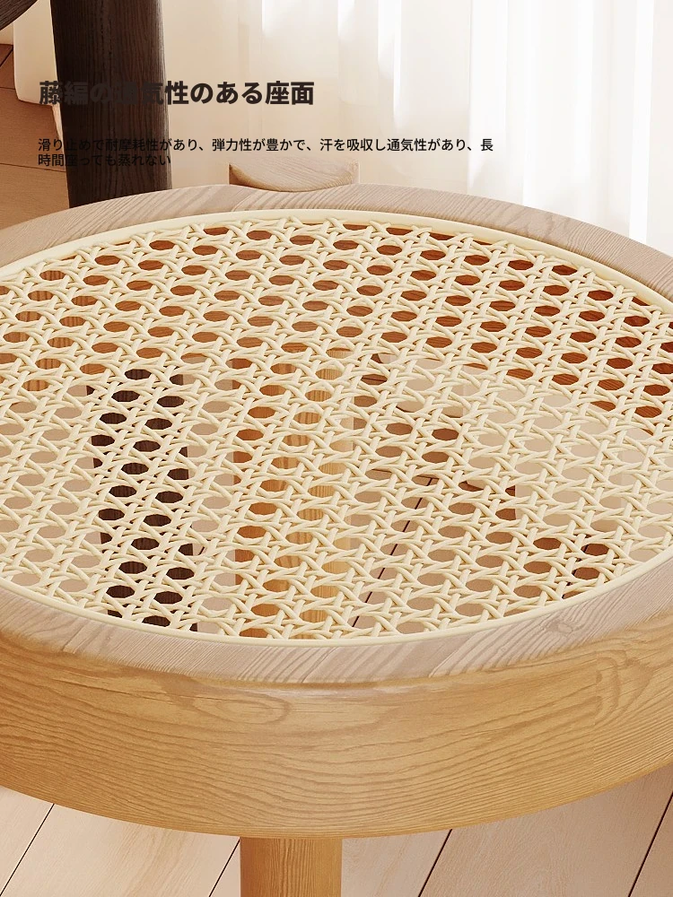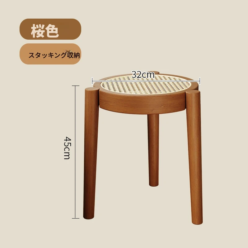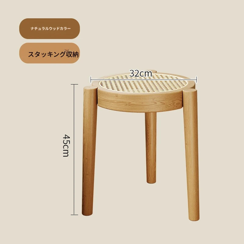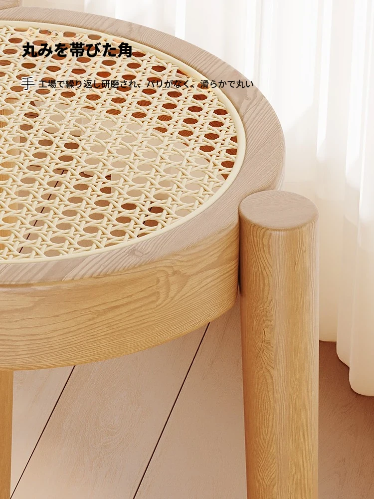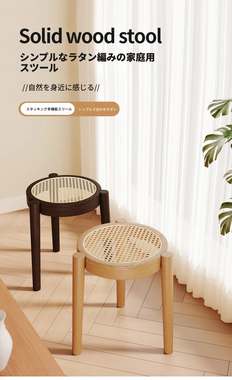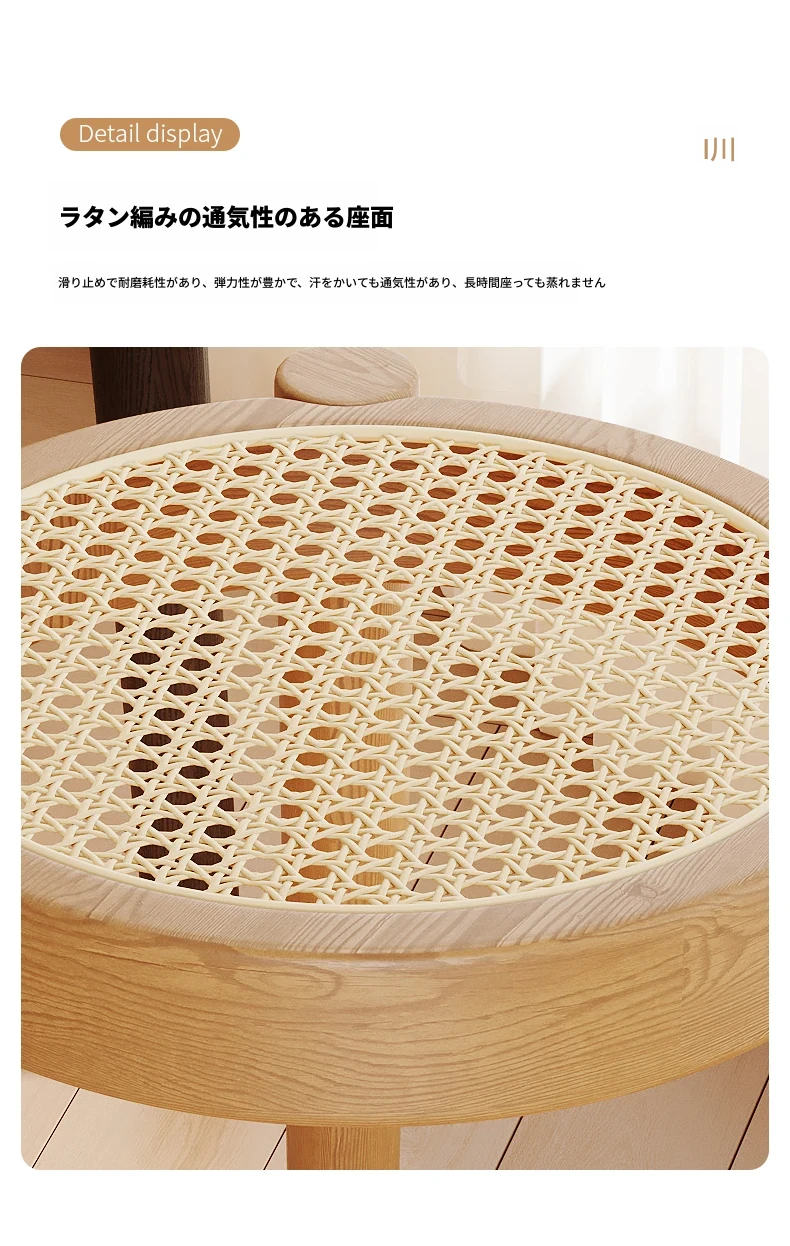 【おしゃれな実木製ダイニングスツール】家庭用・藤編みデザインの丸椅子!省スペースで重ねて収納可能、レトロな原木風でインテリアにもぴったり。ネットで話題の人気商品で、食事の時間をもっと楽しく!