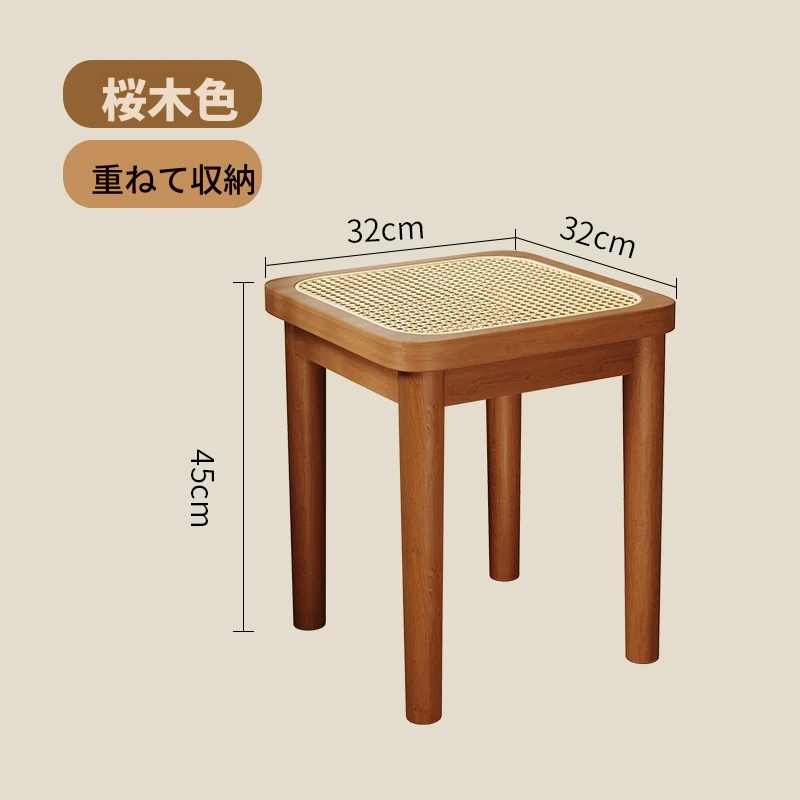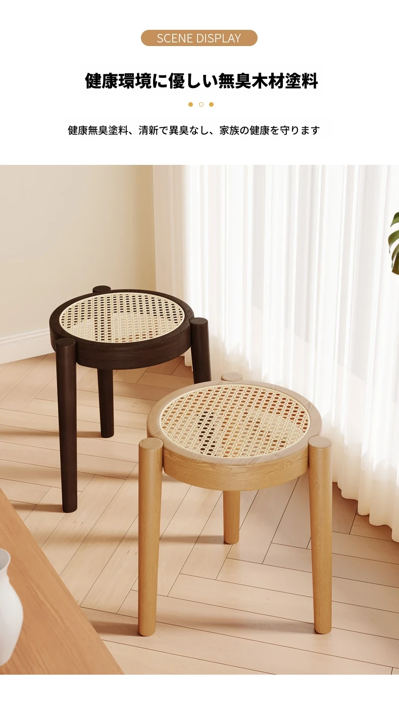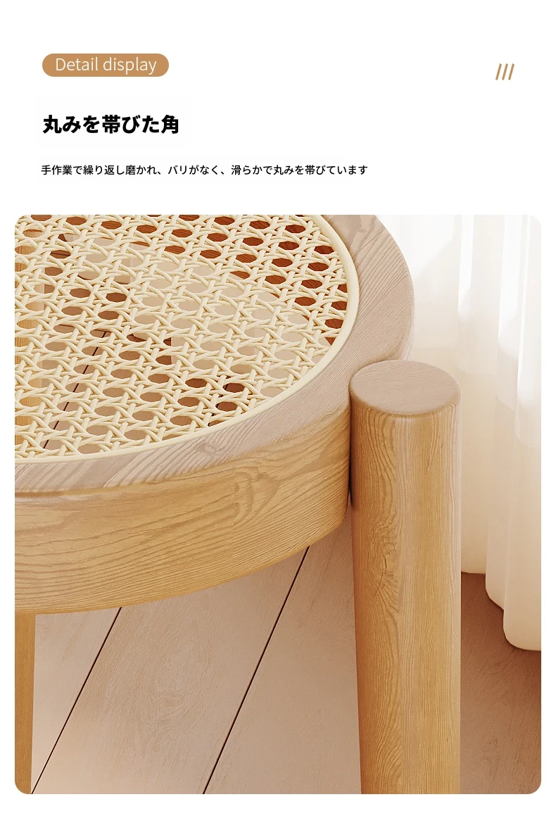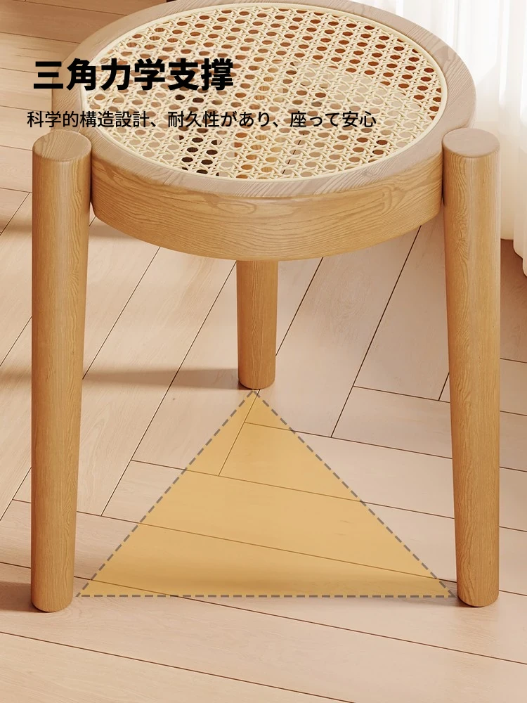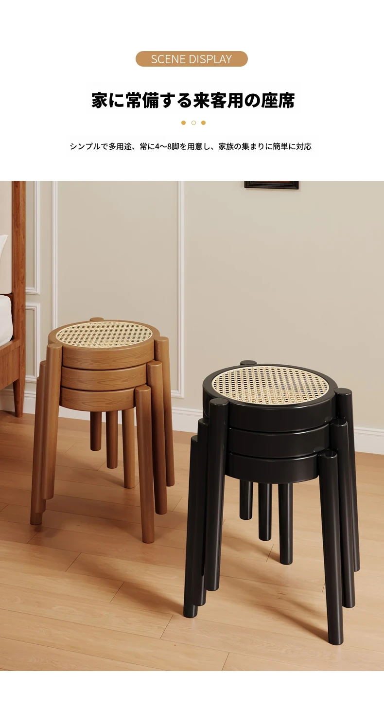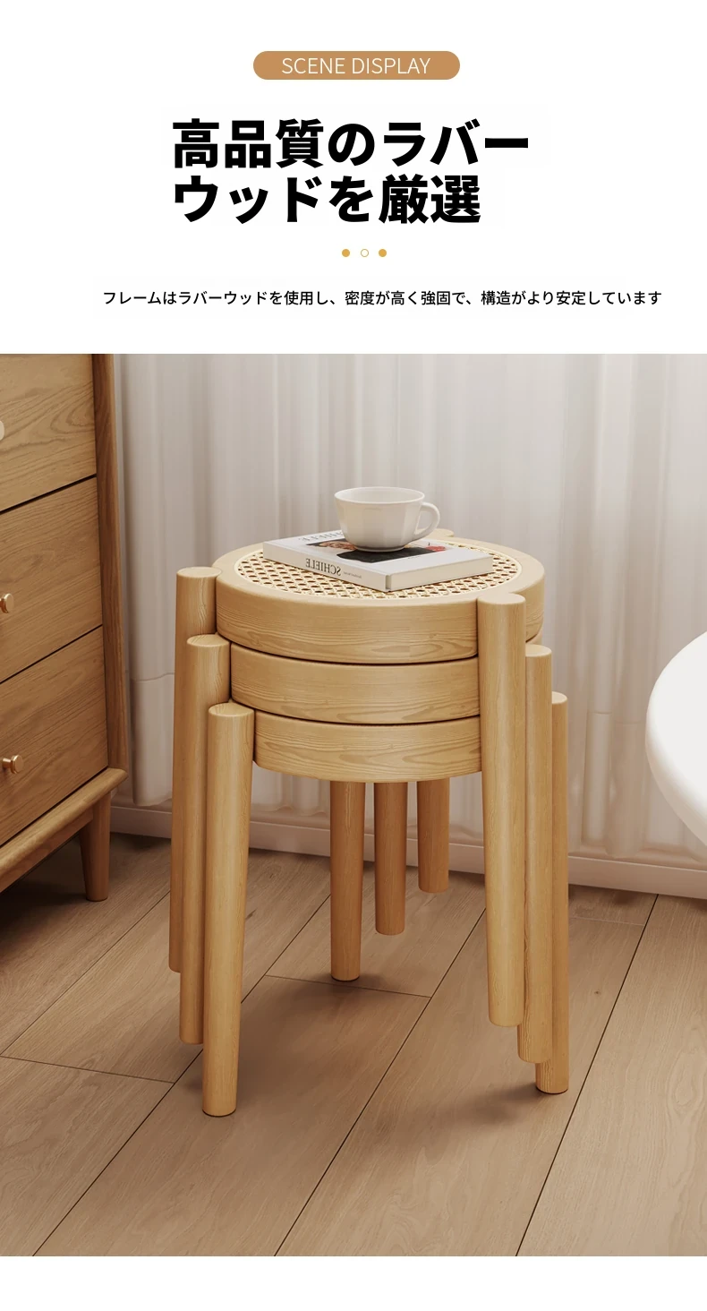 【おしゃれな実木製ダイニングスツール】家庭用・藤編みデザインの丸椅子!省スペースで重ねて収納可能、レトロな原木風でインテリアにもぴったり。ネットで話題の人気商品で、食事の時間をもっと楽しく!