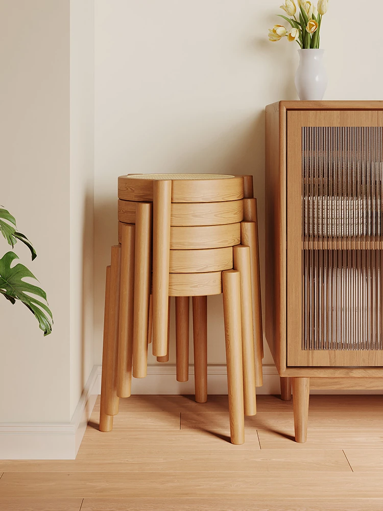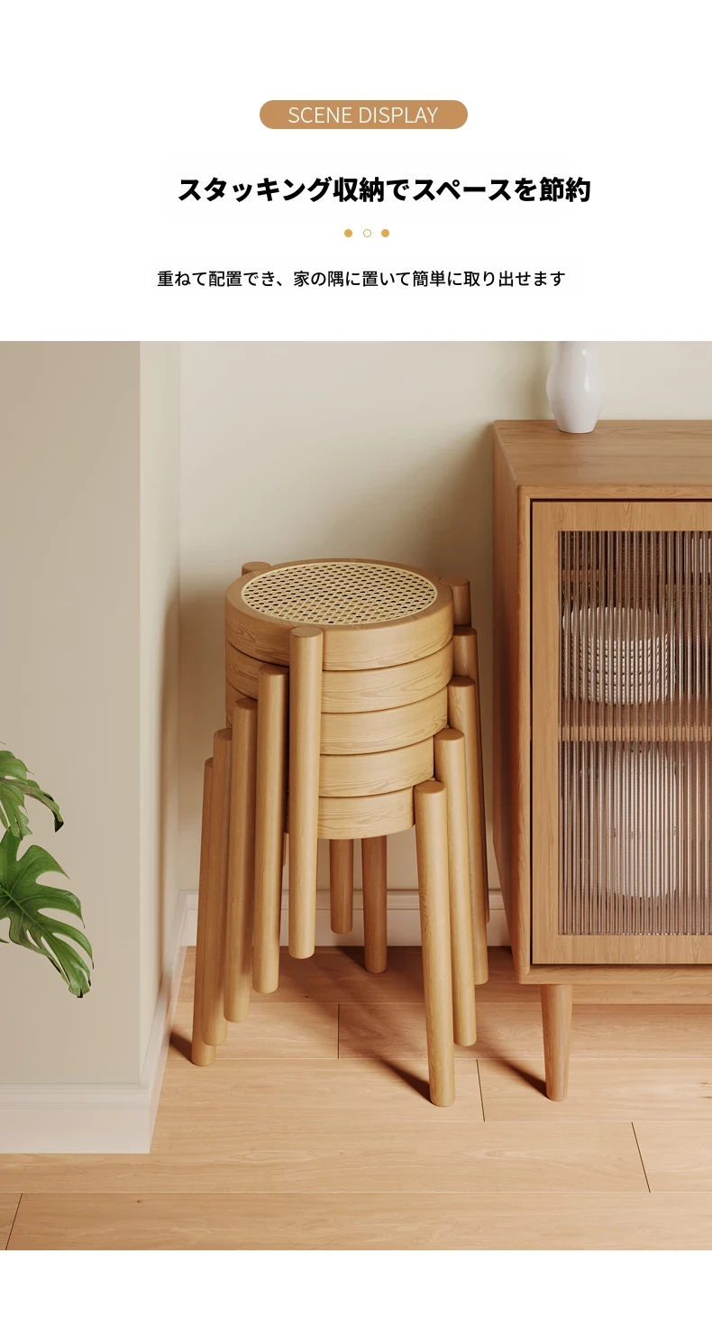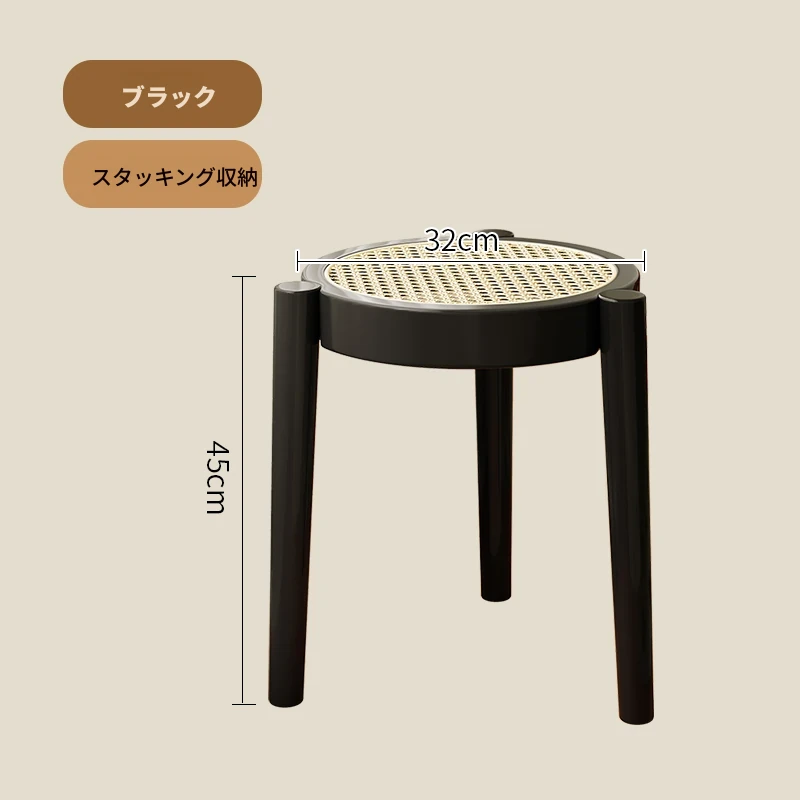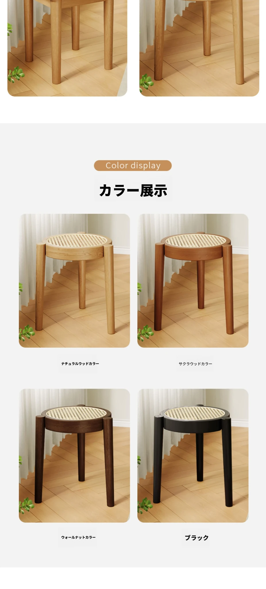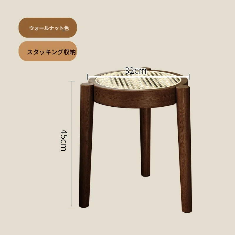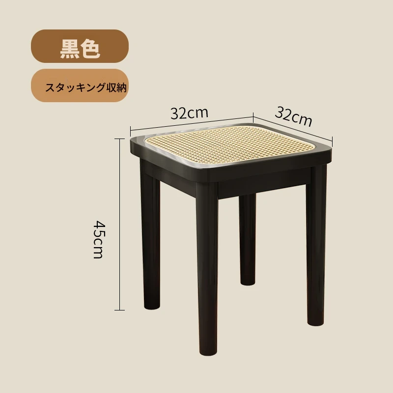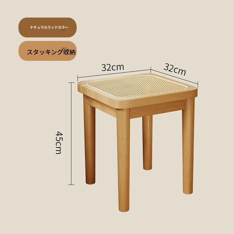 【おしゃれな実木製ダイニングスツール】家庭用・藤編みデザインの丸椅子!省スペースで重ねて収納可能、レトロな原木風でインテリアにもぴったり。ネットで話題の人気商品で、食事の時間をもっと楽しく!