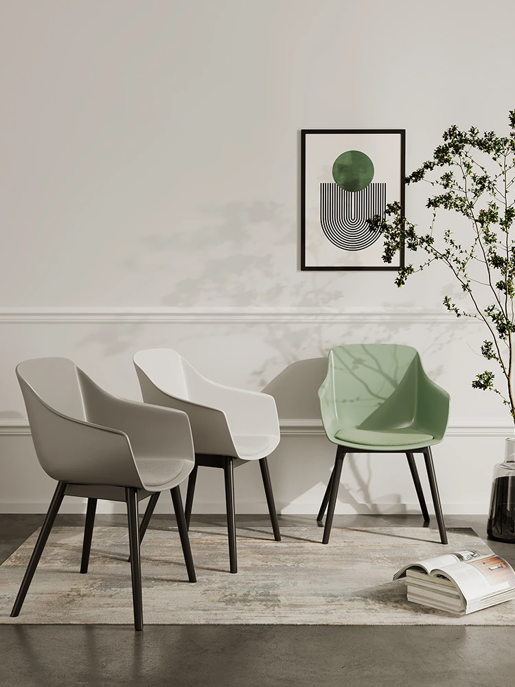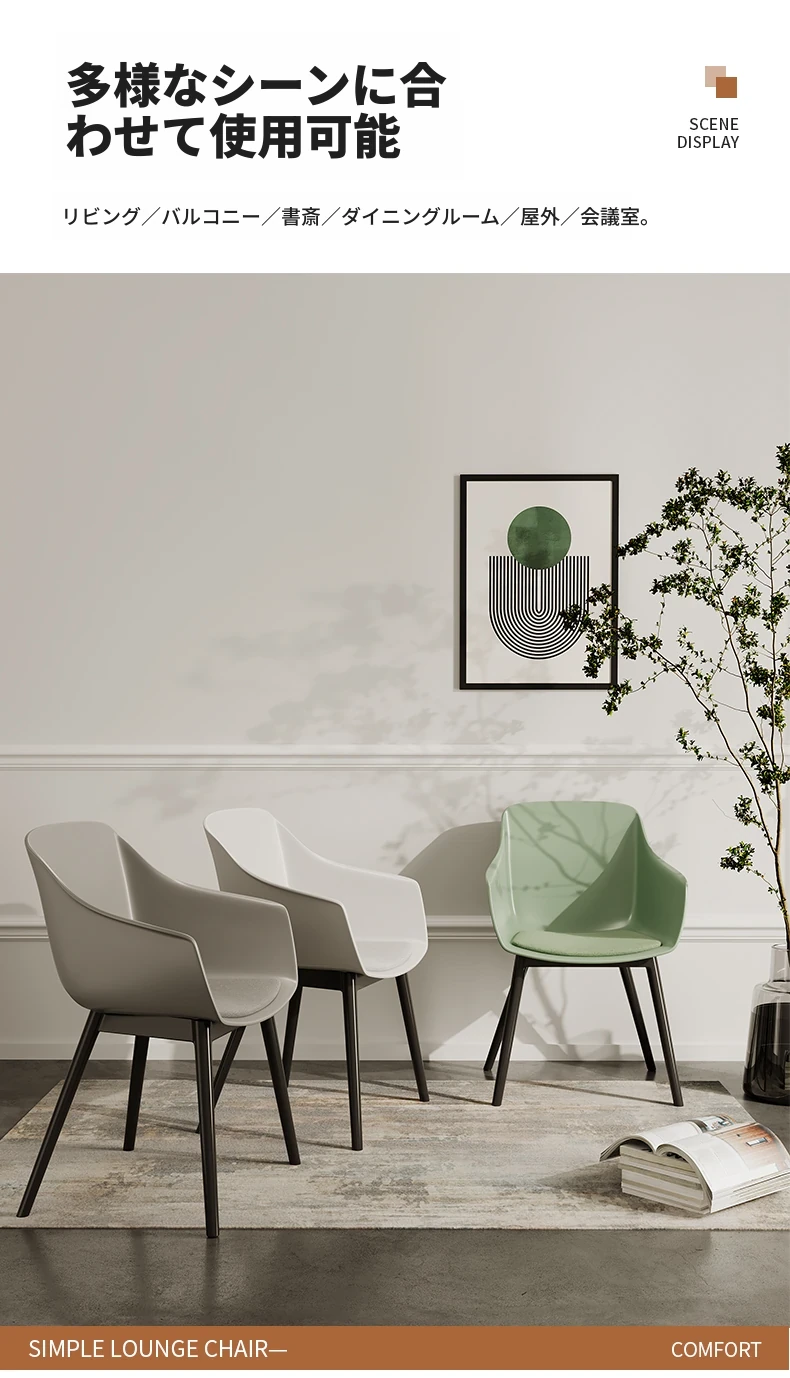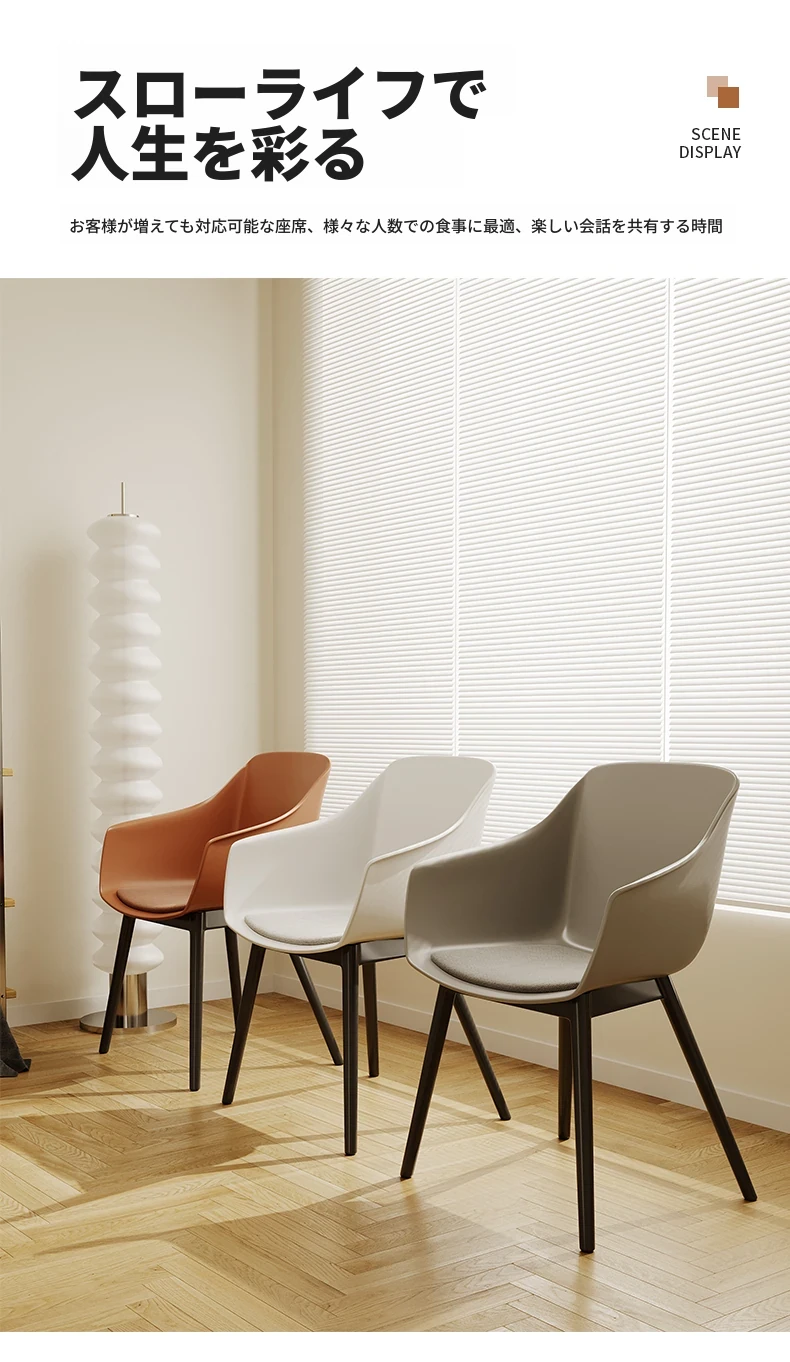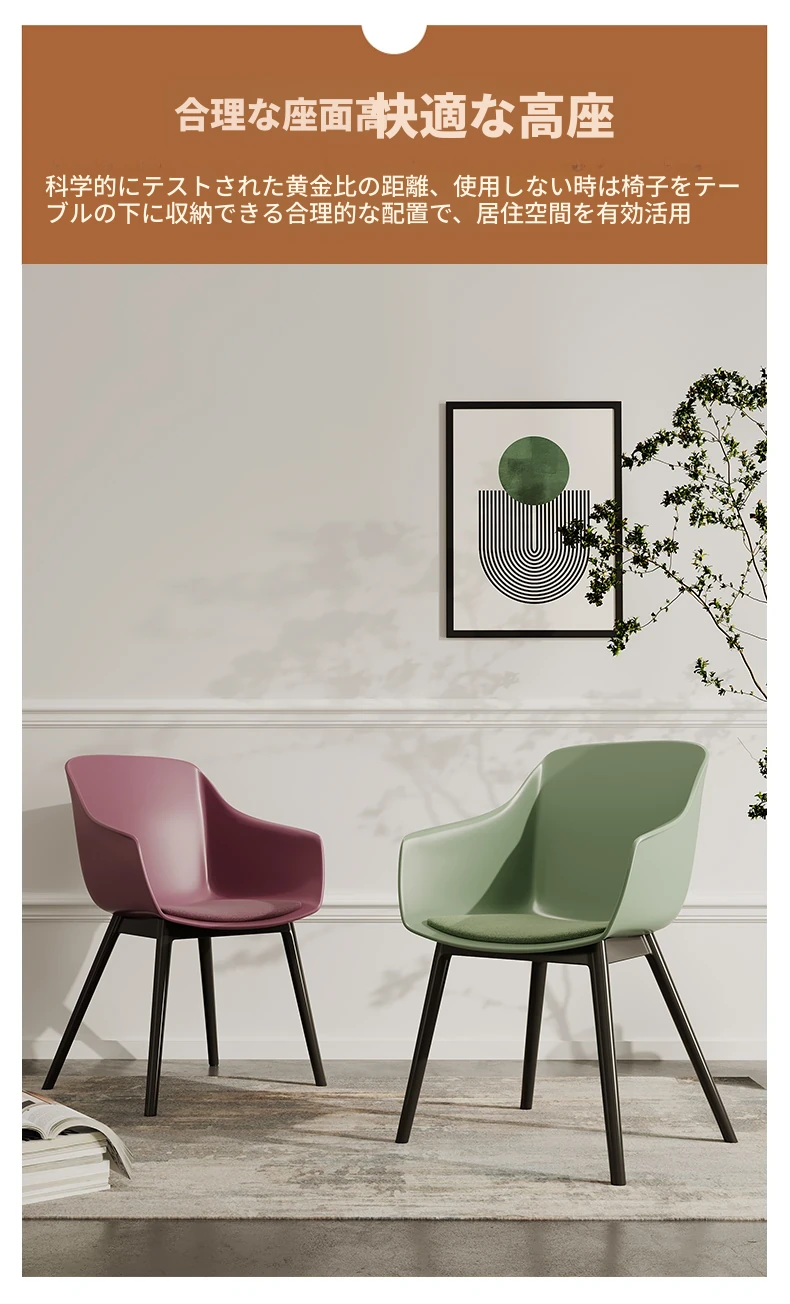 デザイン性抜群!快適な背もたれ付きプラスチック製のダイニングチェア。長時間の座り心地を追求した、軽やかで高級感あふれるリビング用リラックスチェア。あなたの食卓をスタイリッシュに彩ります!