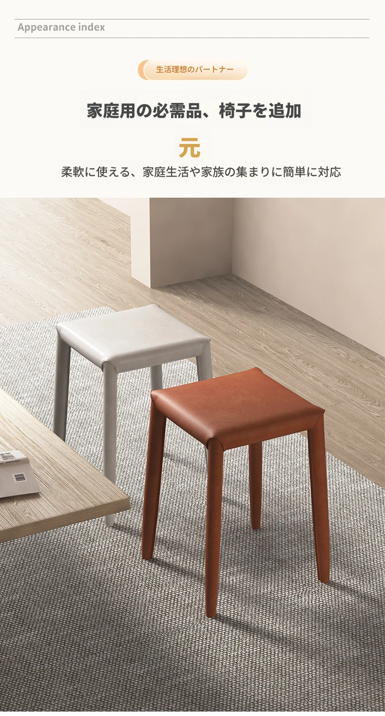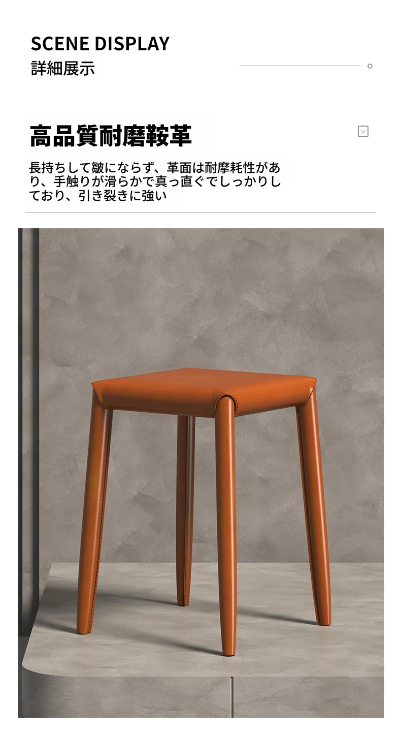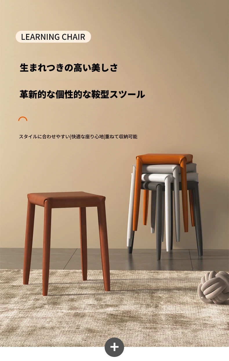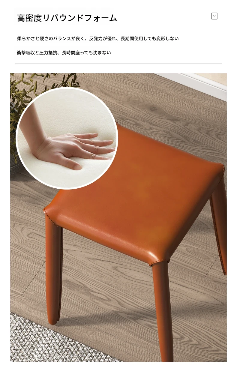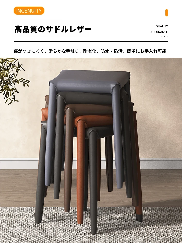 軽やかさとスタイルを兼ね備えたマ Saddle スツール - 家庭用・重ねて収納可能、ダイニングや店舗で大活躍のコンパクトなソフトパッキング・スクエアスツール!あなたの空間をおしゃれに演出します。