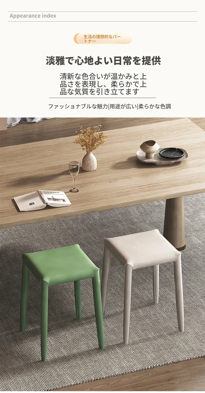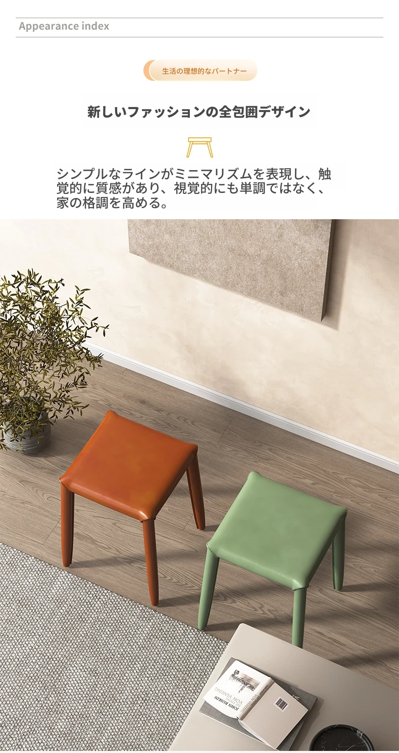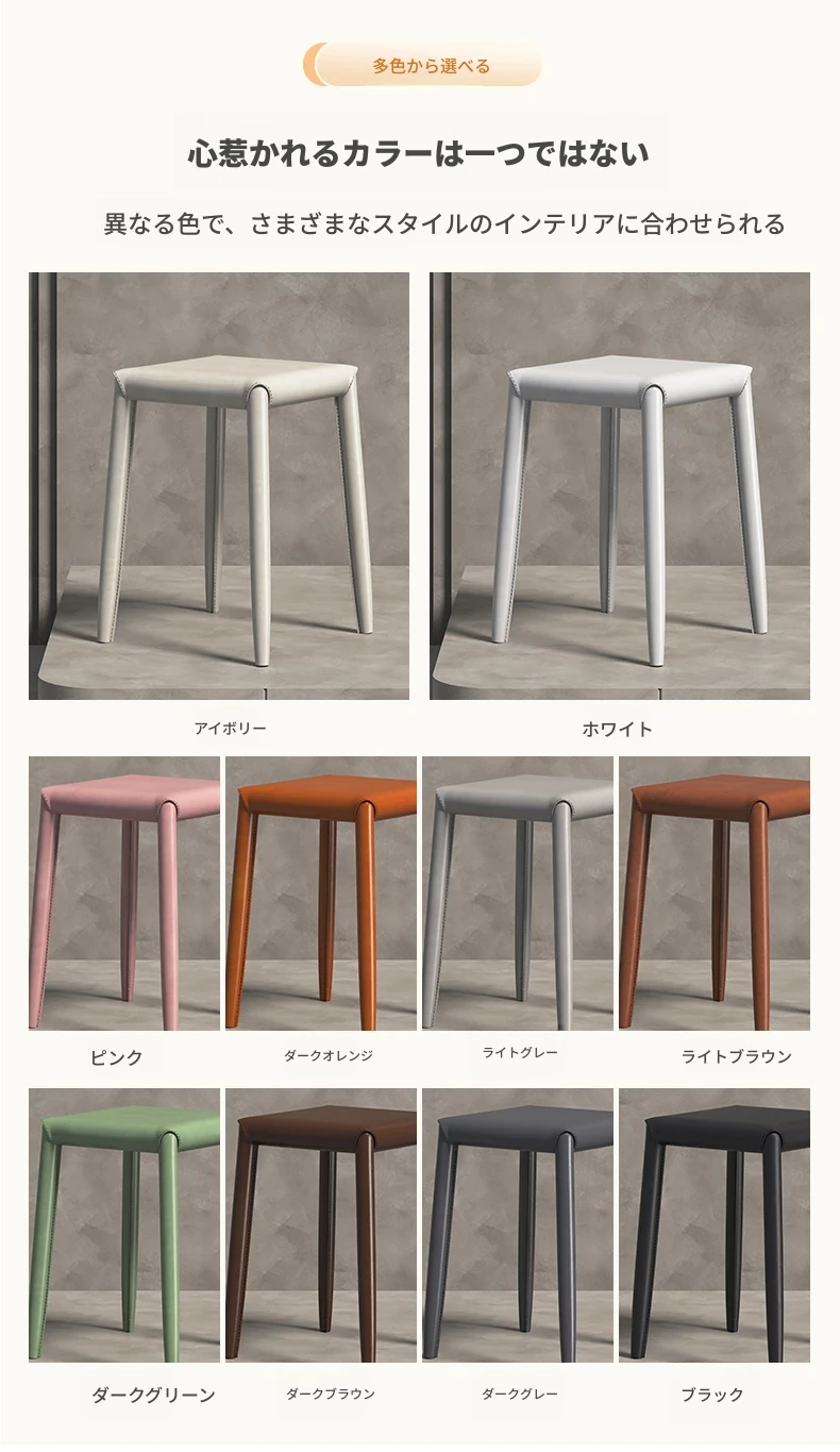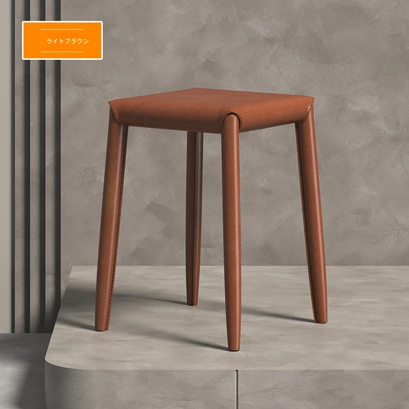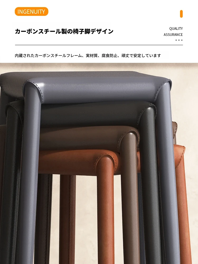 軽やかさとスタイルを兼ね備えたマ Saddle スツール - 家庭用・重ねて収納可能、ダイニングや店舗で大活躍のコンパクトなソフトパッキング・スクエアスツール!あなたの空間をおしゃれに演出します。