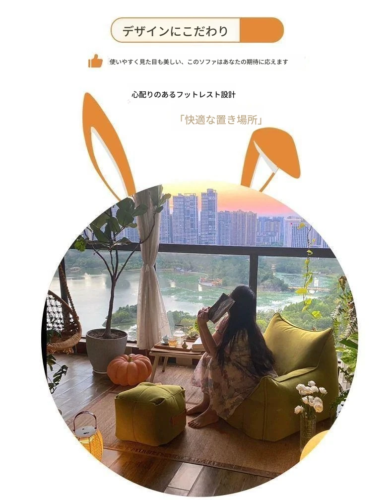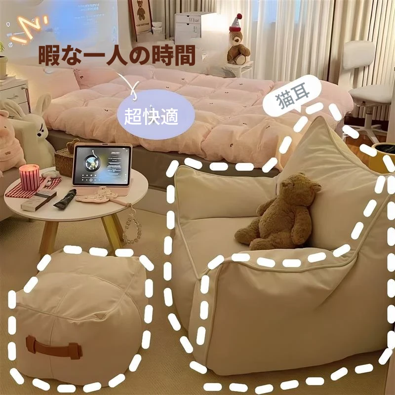 大サイズ丨クリームホワイト+フットレスト【長時間座ってもへたらない】
