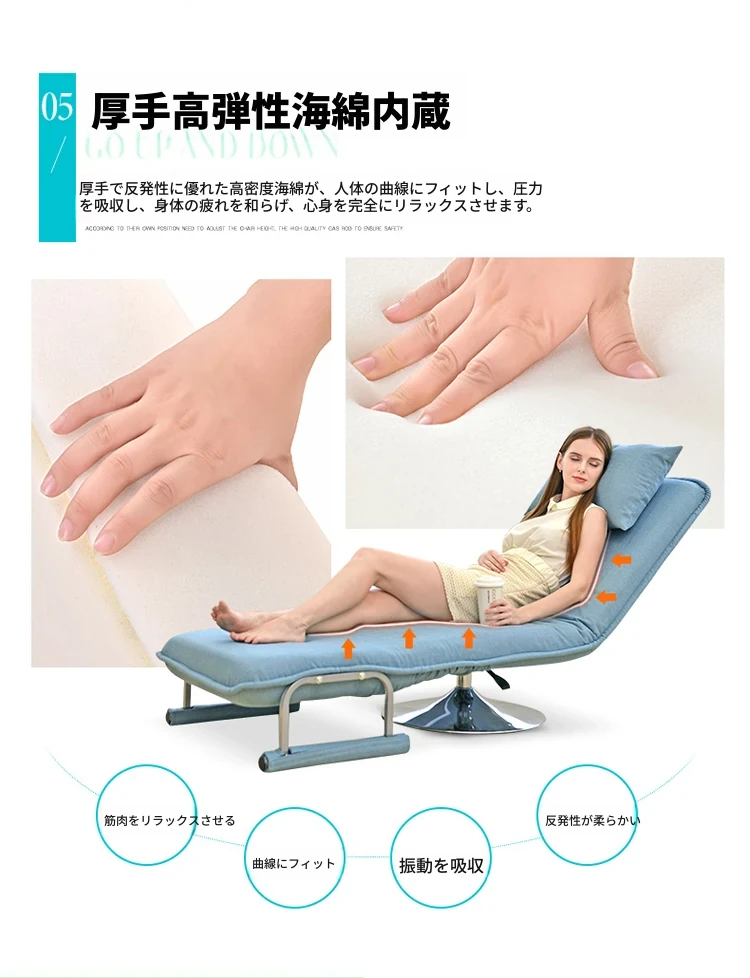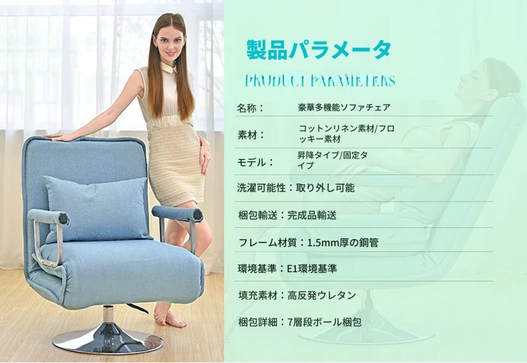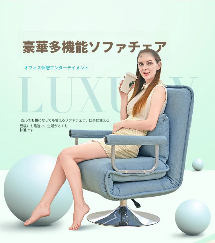 多機能オフィス用一人用ソファ|リクライニングベッド兼用|回転式コンピューターチェア|折りたたみ式のラクラクソファ|快適な座り心地で、仕事もリラックスもこれ一つで!