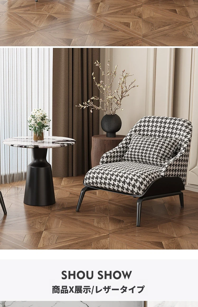 千鳥格子の綿麻+黒色ナパレザー/カーボン鋼メタル脚架
