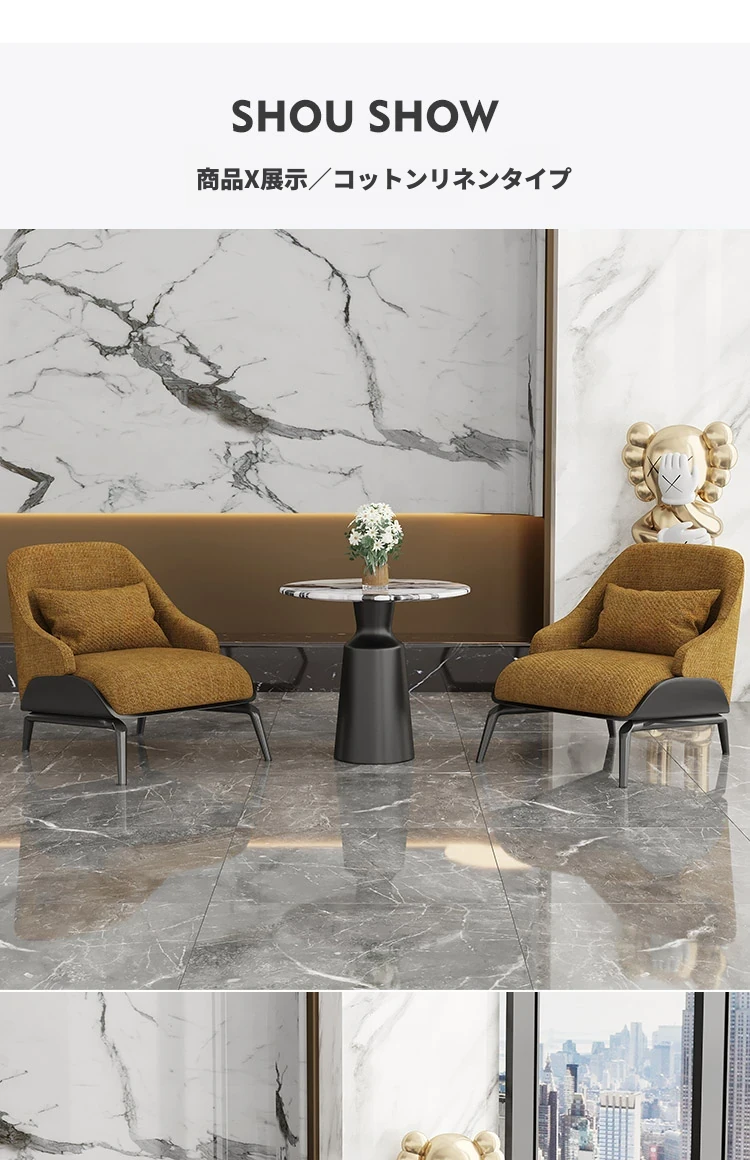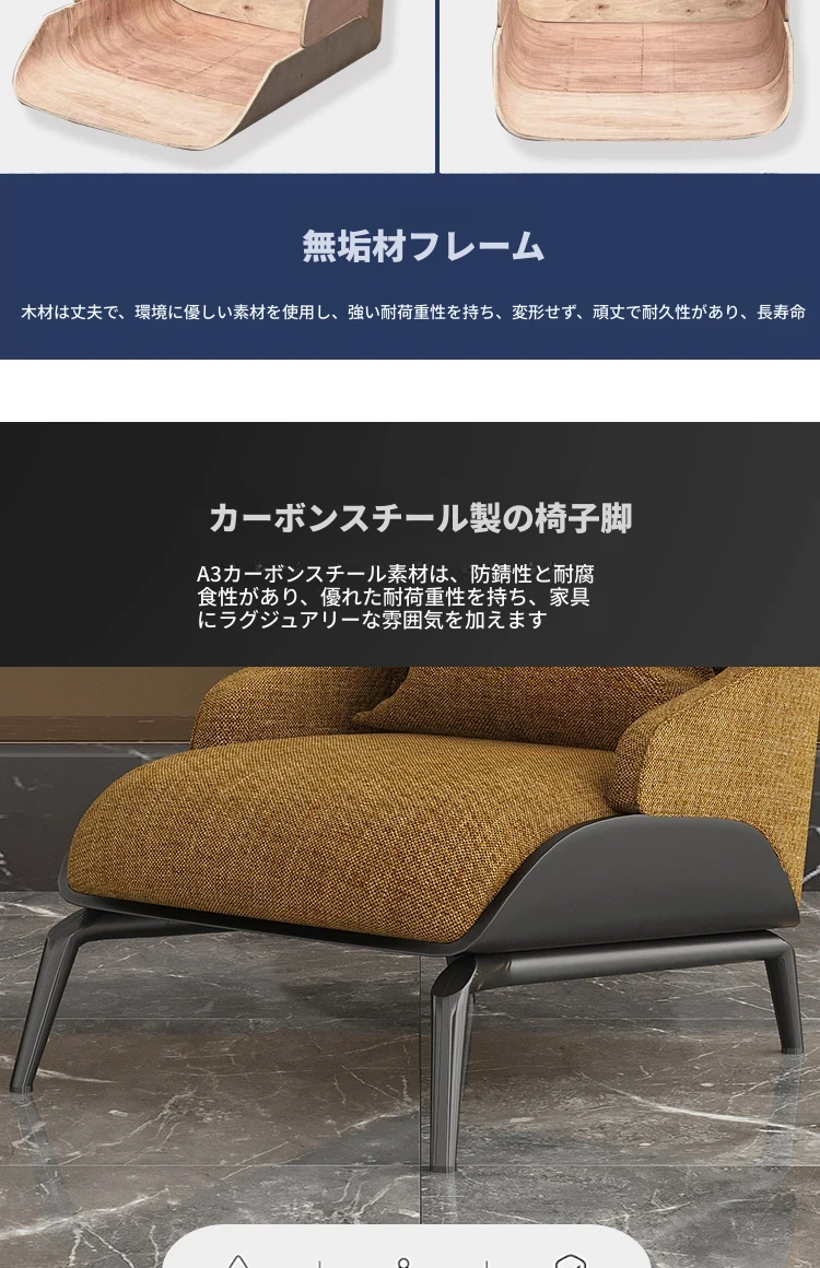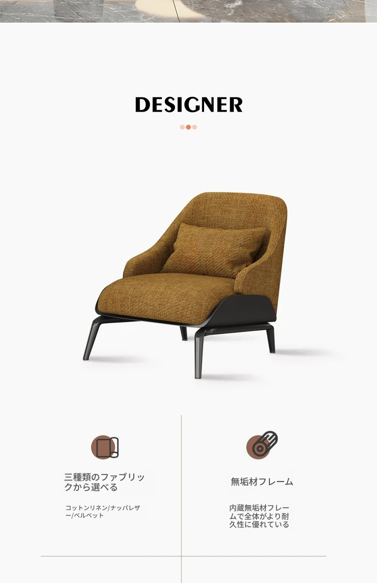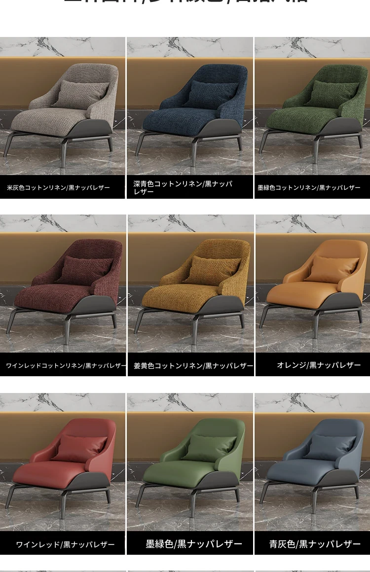 姜黄色の綿麻+黒色ナパレザー/カーボン鋼メタル脚架
