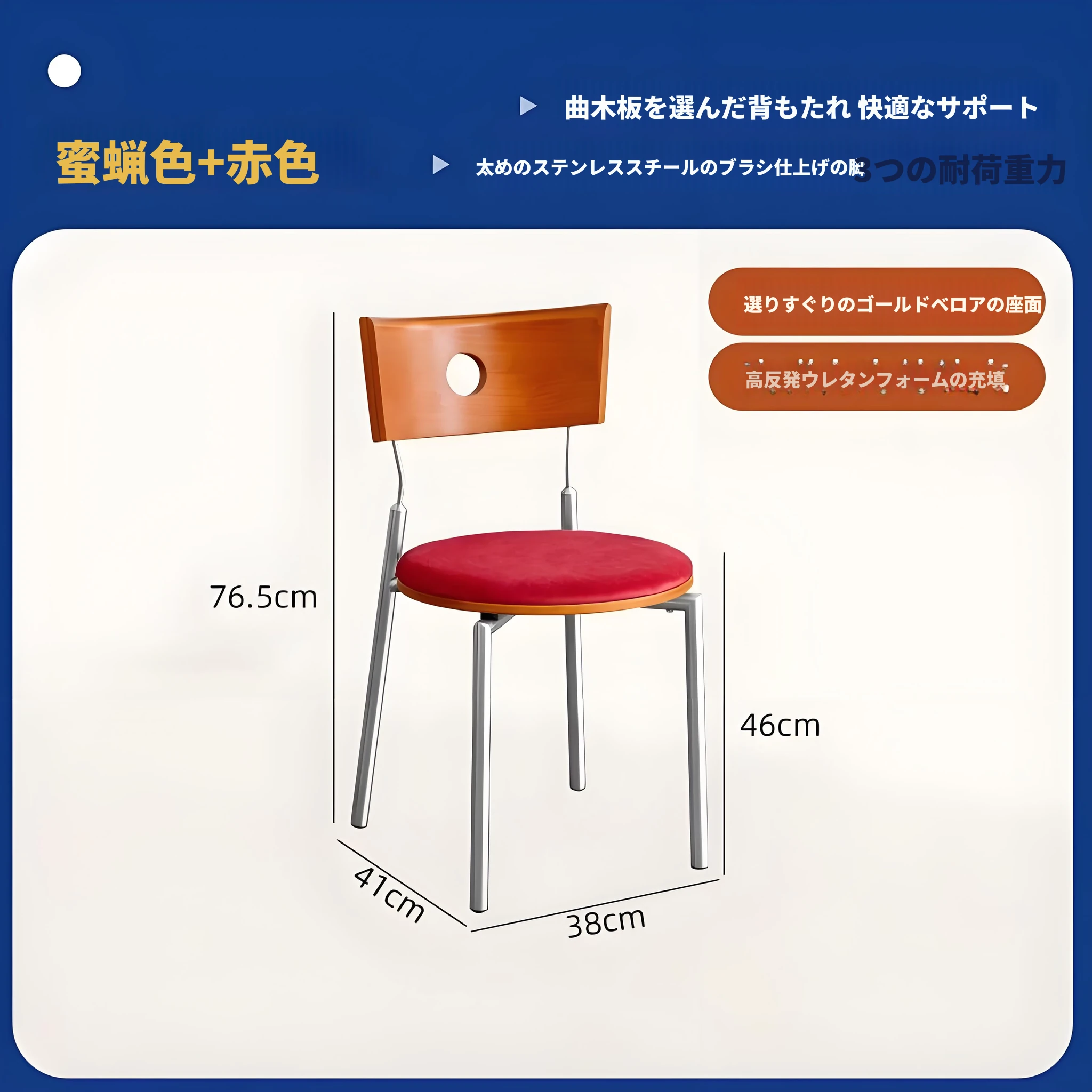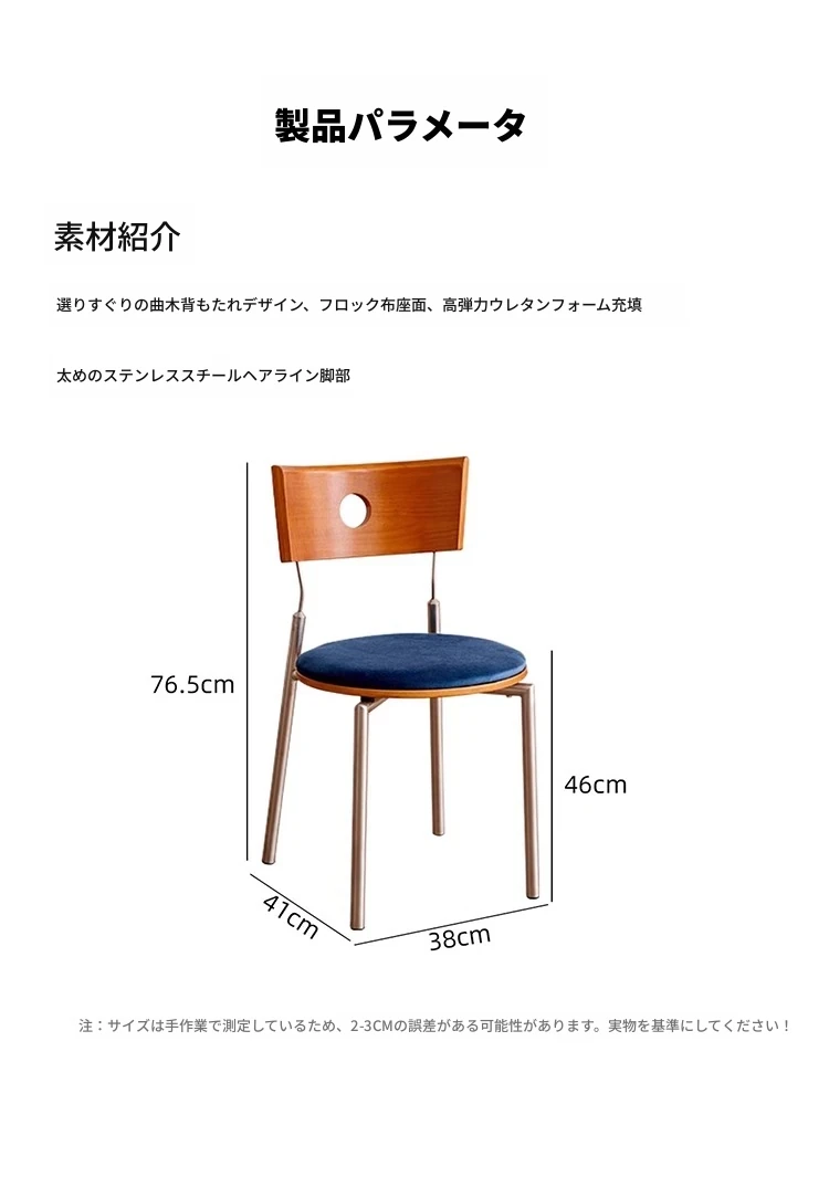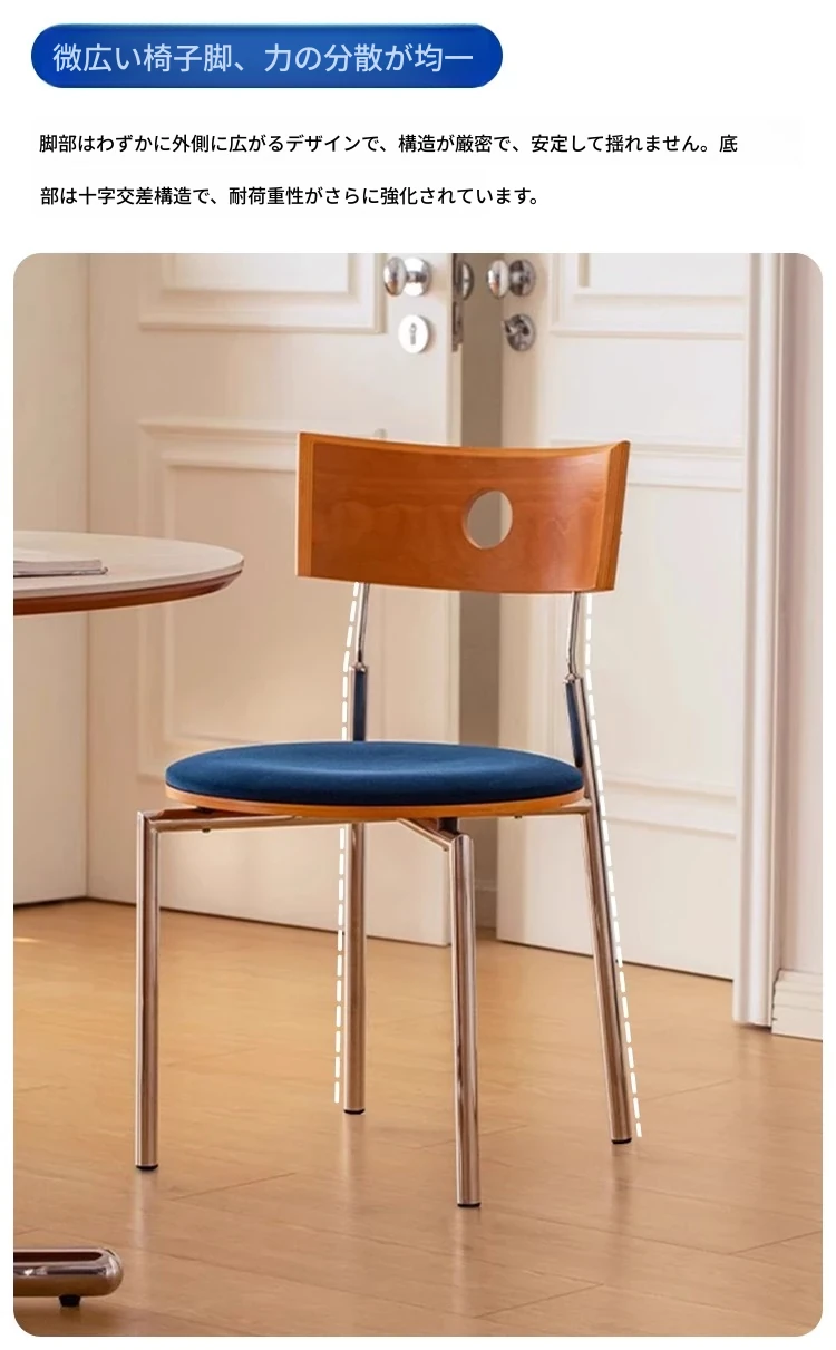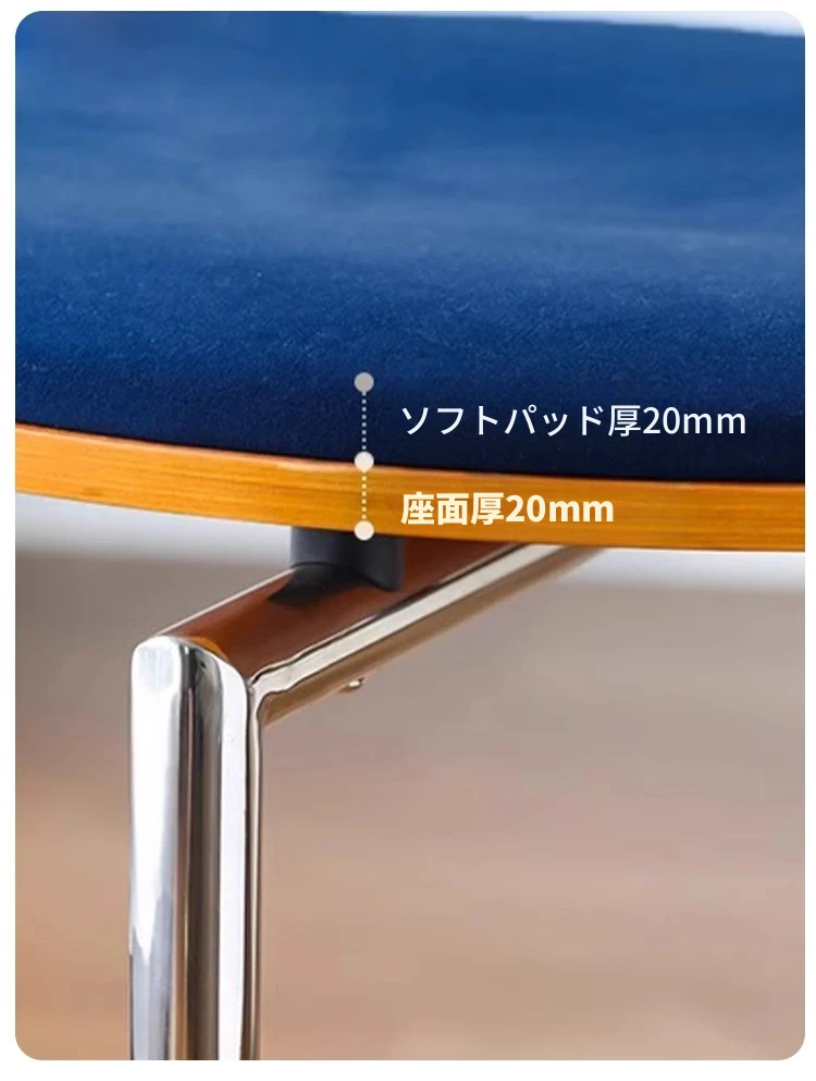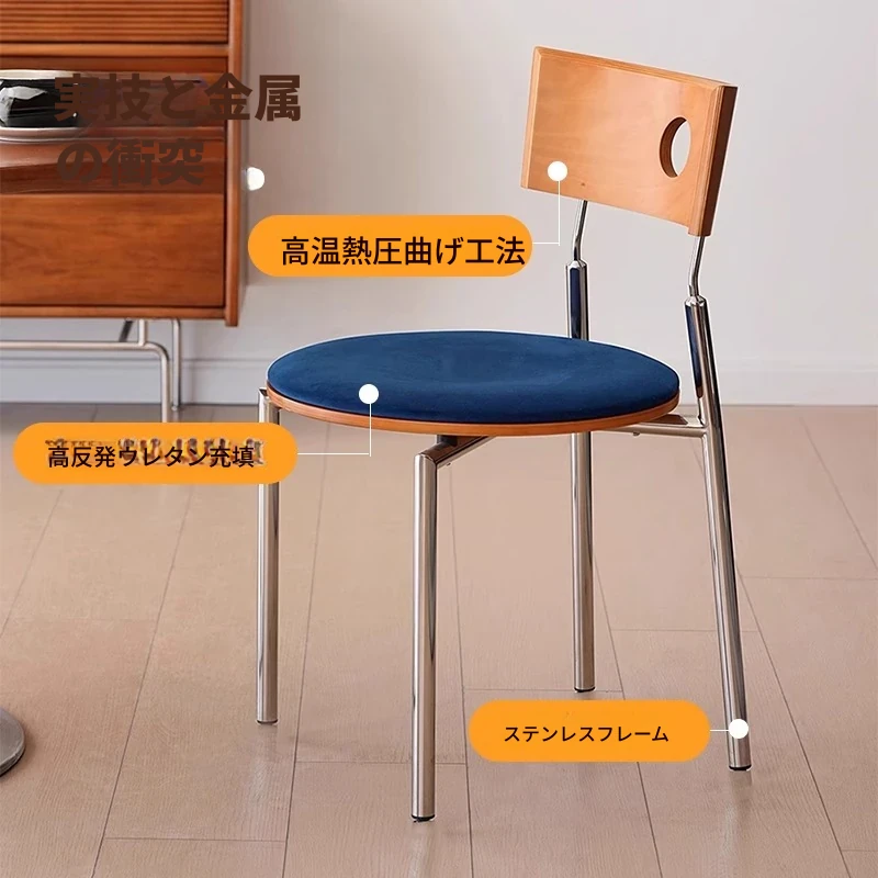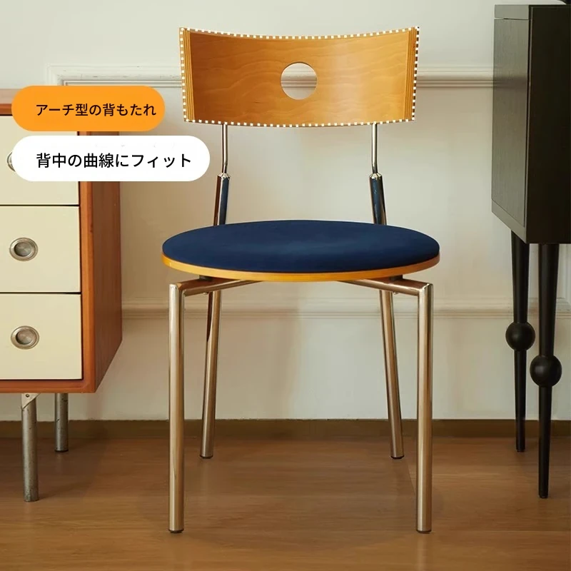 蜜ろう色の背もたれ+蜜ろう座板+青色のベロアクッション【ステンレス脚】素材に異臭なし【バイヤー募集】