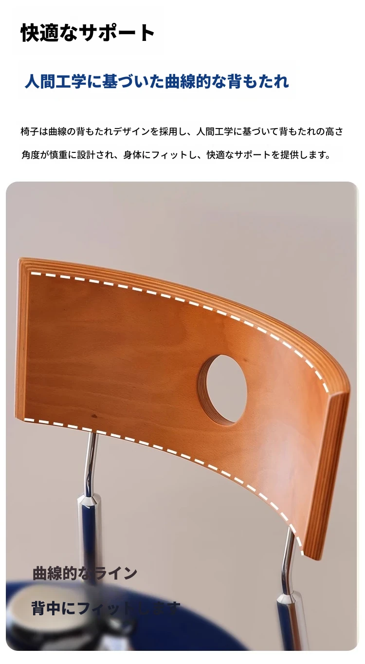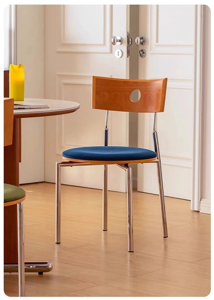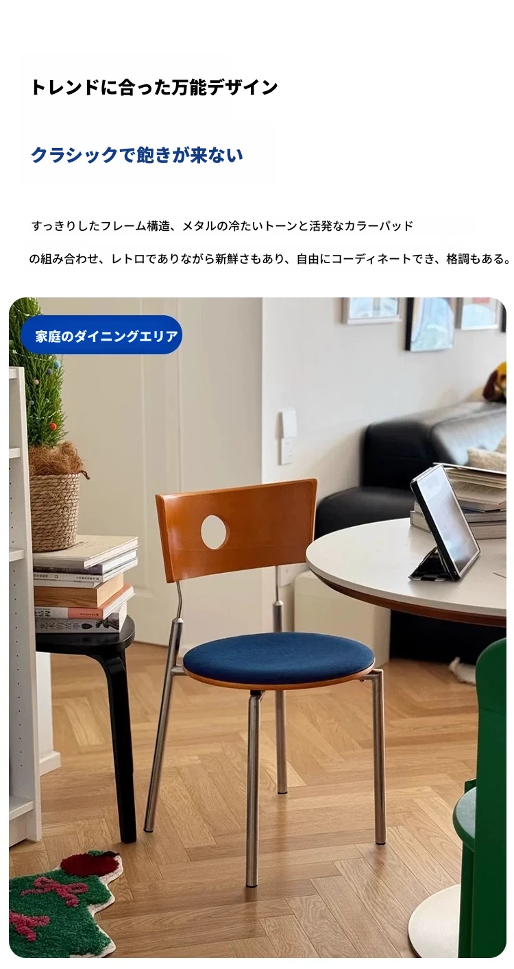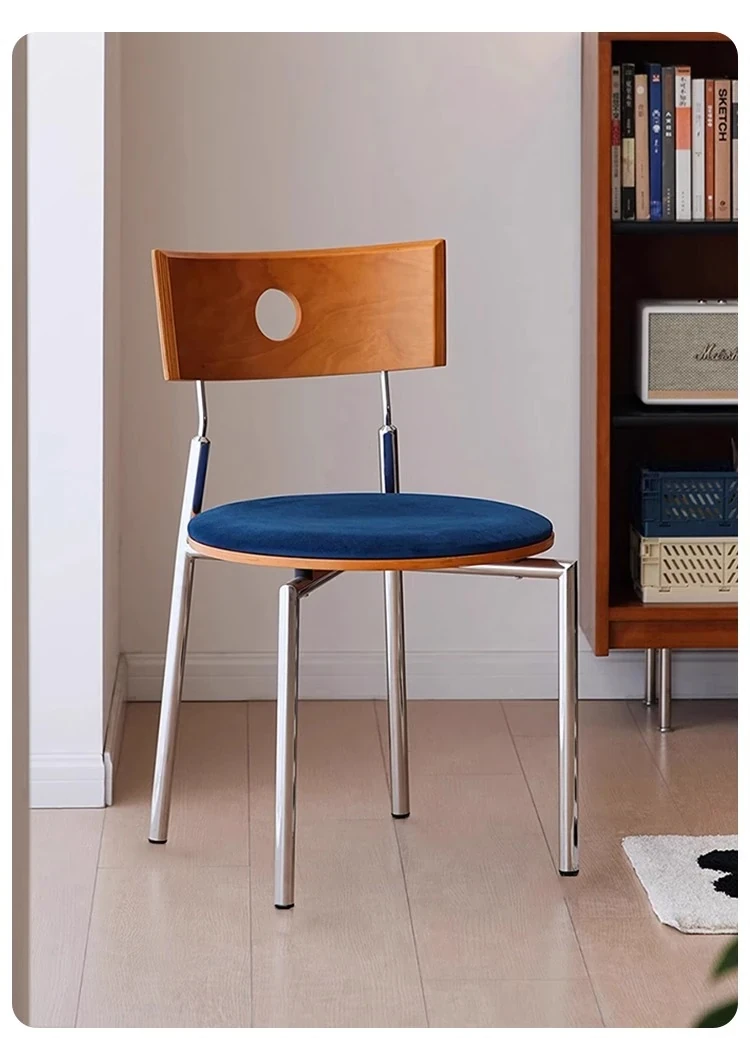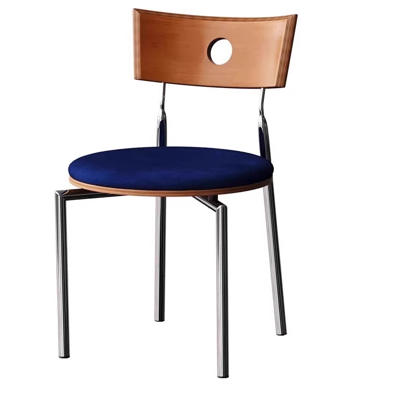 蜜ろう色の背もたれ+蜜ろう座板+青色のベロアクッション【ステンレス脚】素材に異臭なし【バイヤー募集】