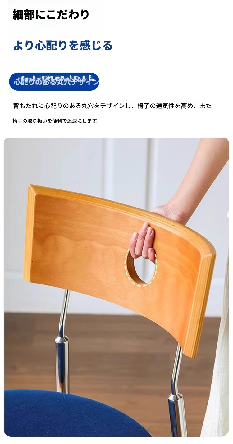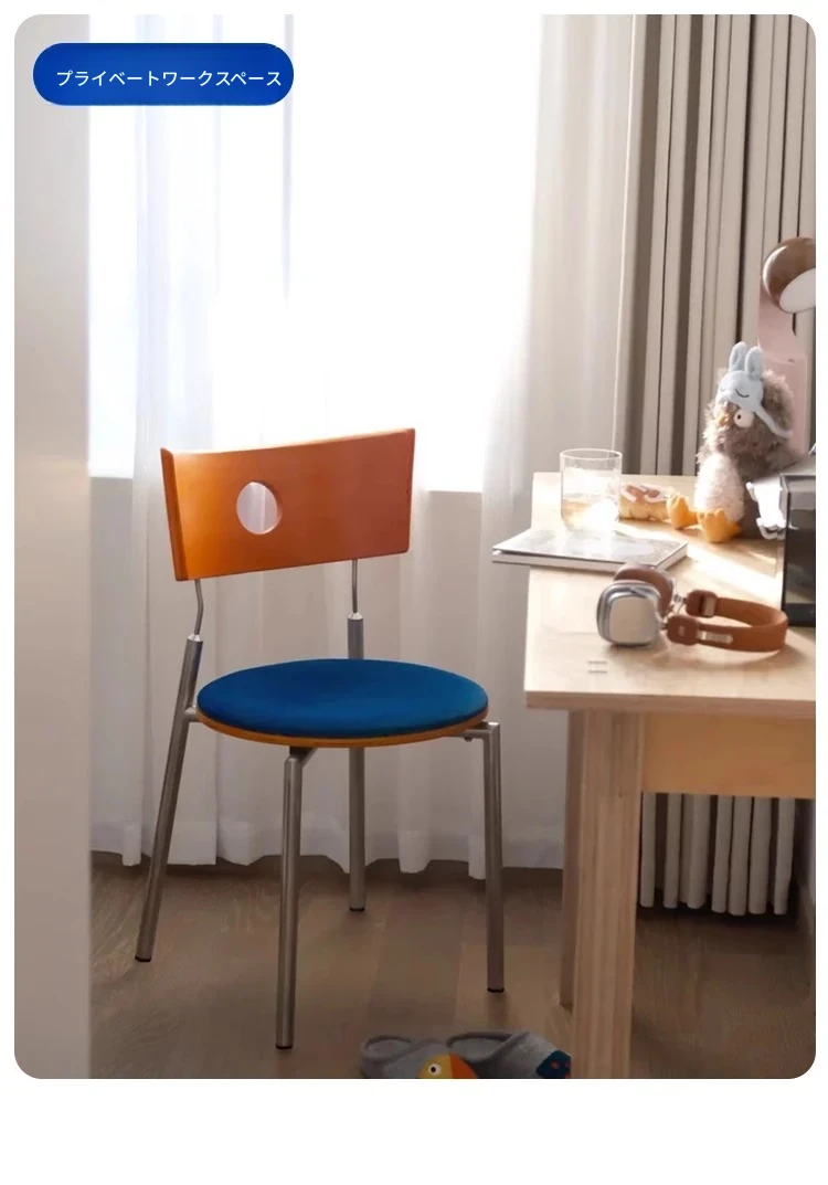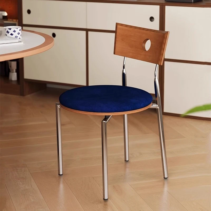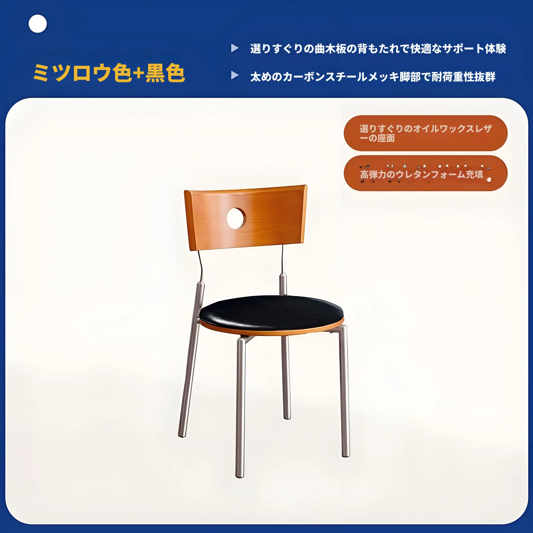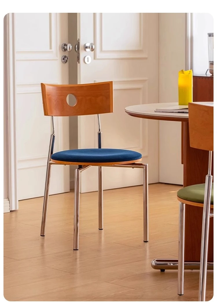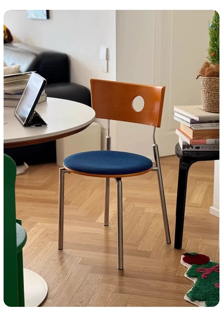蜜ろう色の背もたれ+蜜ろう座板+青色のベロアクッション【ステンレス脚】素材に異臭なし【バイヤー募集】