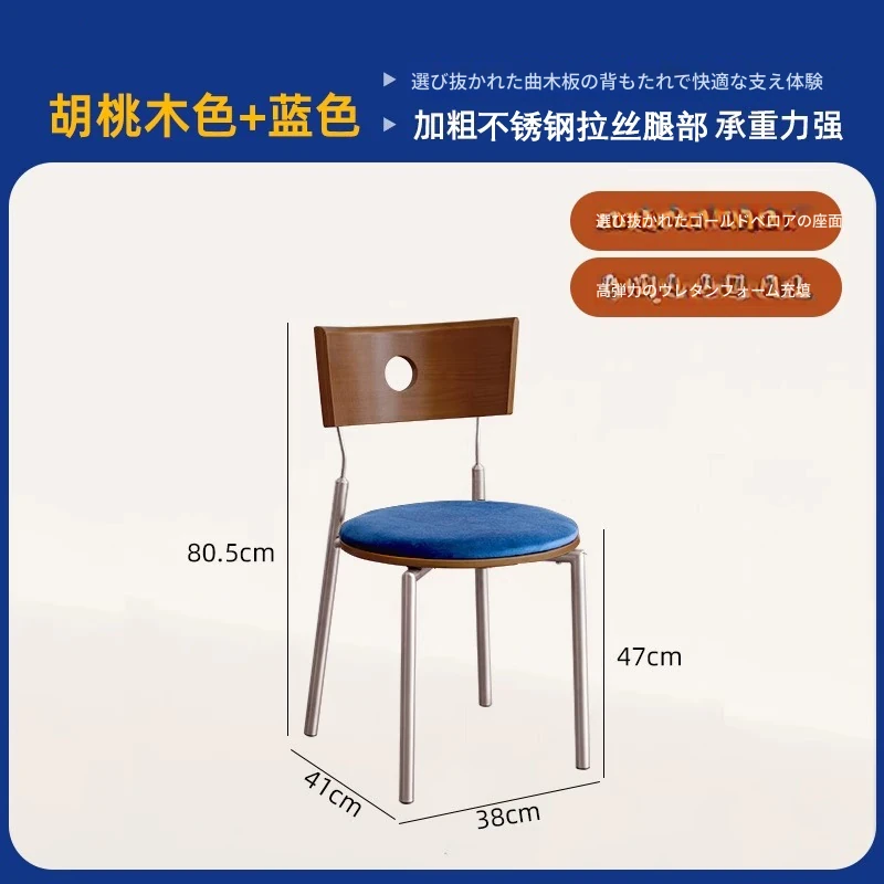 胡桃色の背もたれ+胡桃色の座板+青色のベロアクッション【ステンレス脚】