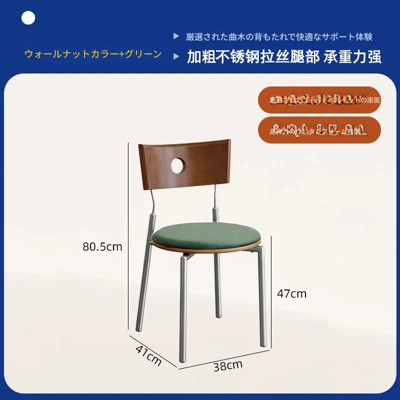 胡桃色の背もたれ+胡桃色の座板+緑色のベロアクッション【ステンレス脚】