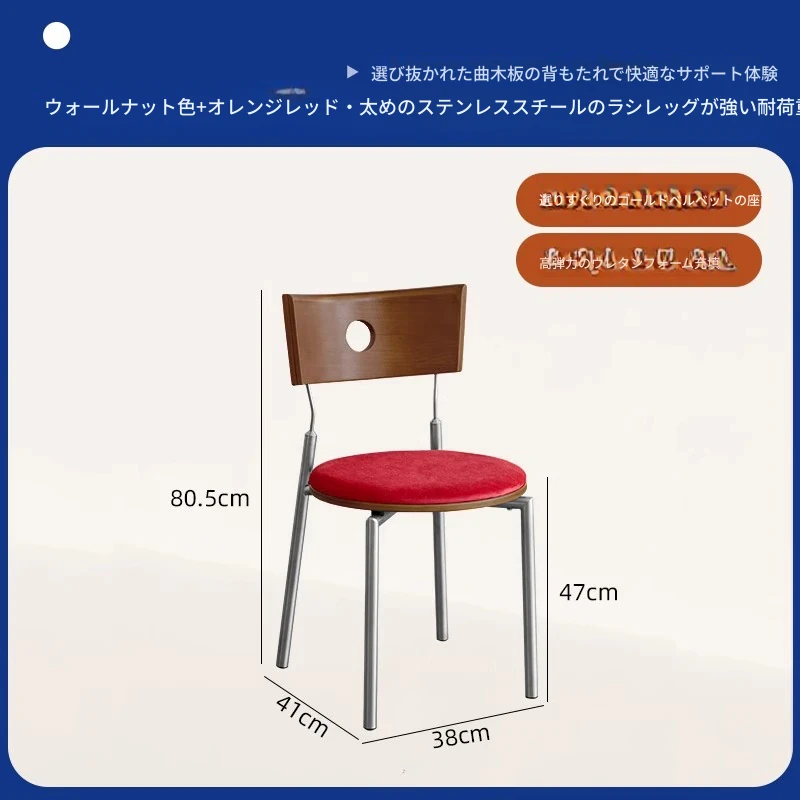 胡桃色の背もたれ+胡桃色の座板+赤色のベロアクッション【ステンレス脚】