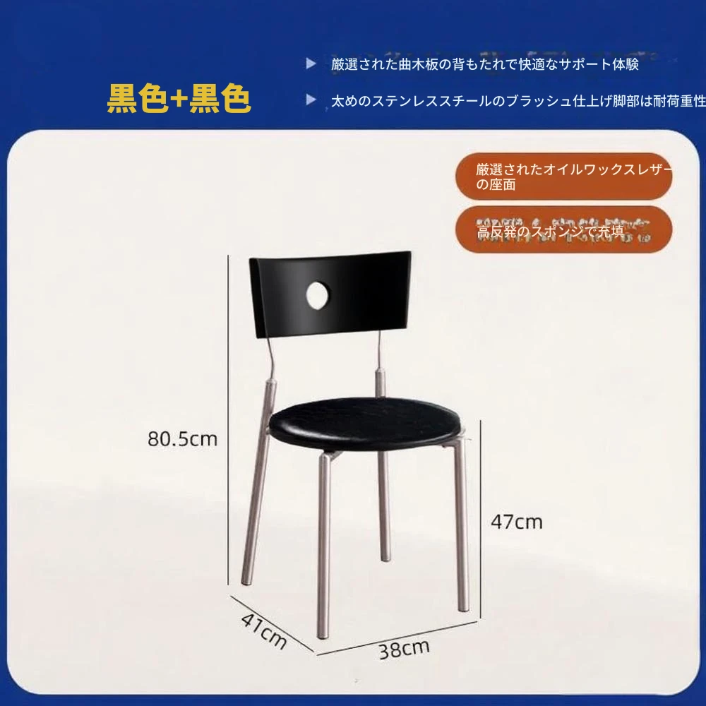 黒木色の背もたれ+黒色の座板+黒色のベロアクッション【ステンレス脚】