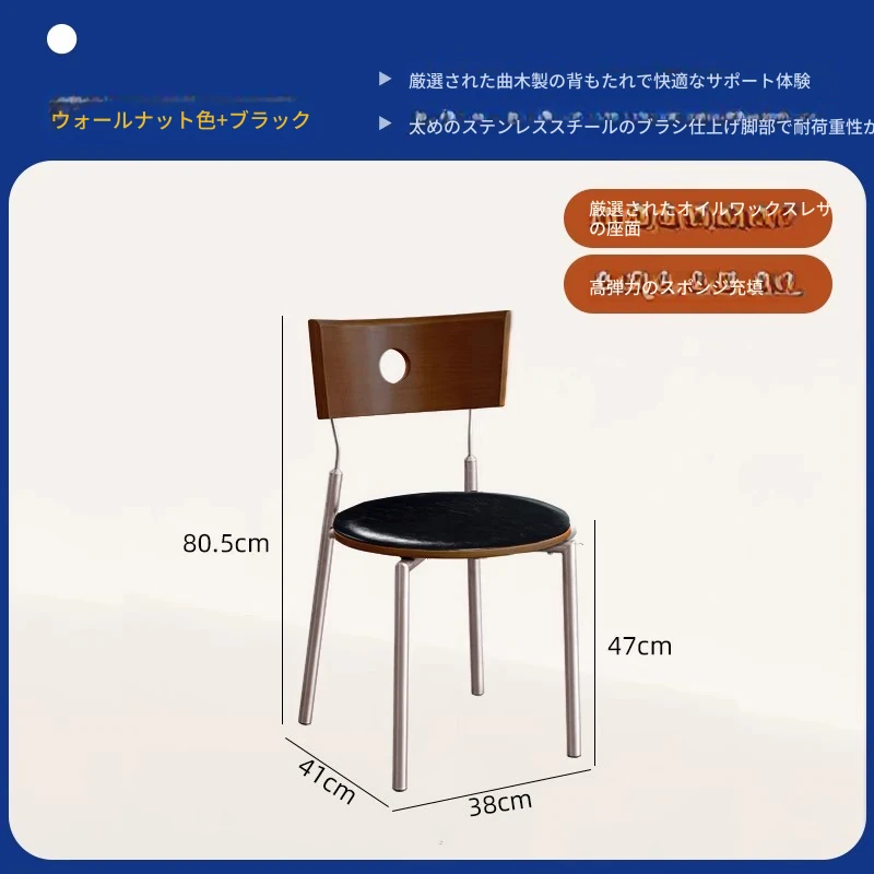 胡桃色の背もたれ+胡桃色の座板+黒色のベロアクッション【ステンレス脚】