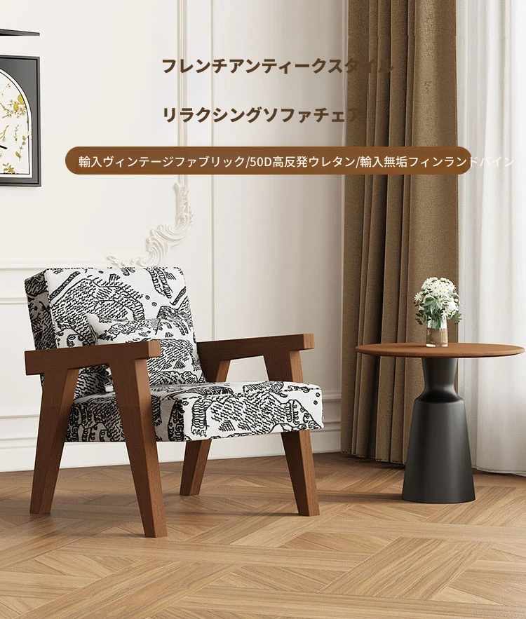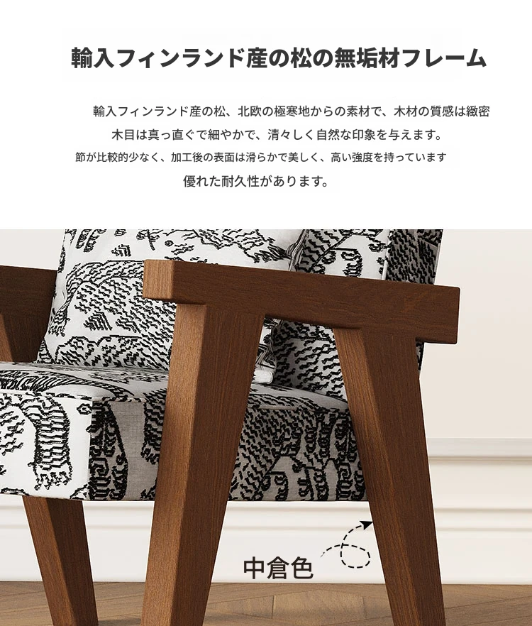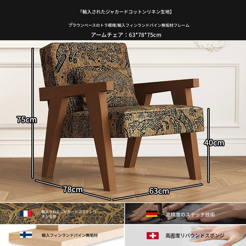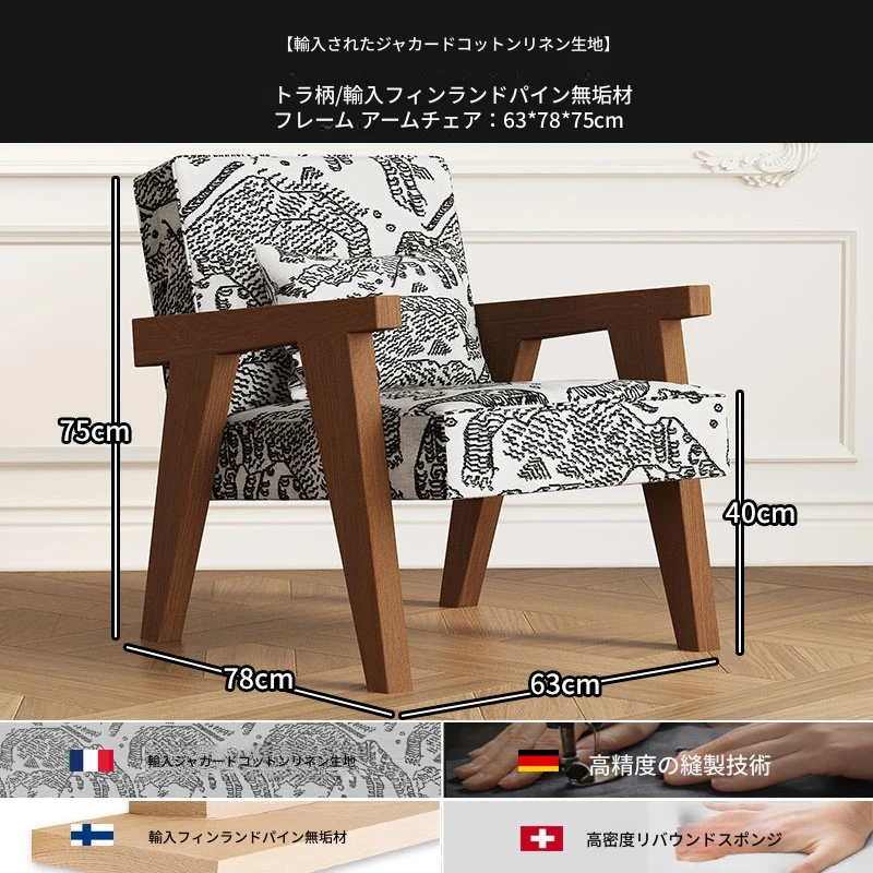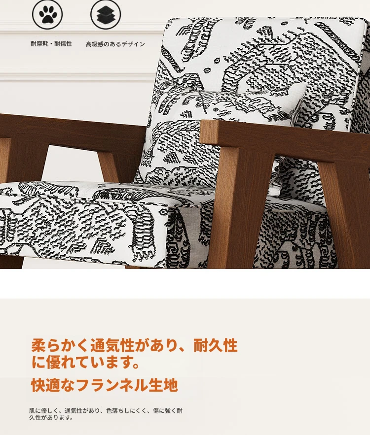 虎柄ジャガードコットンリネン/無垢材フレーム