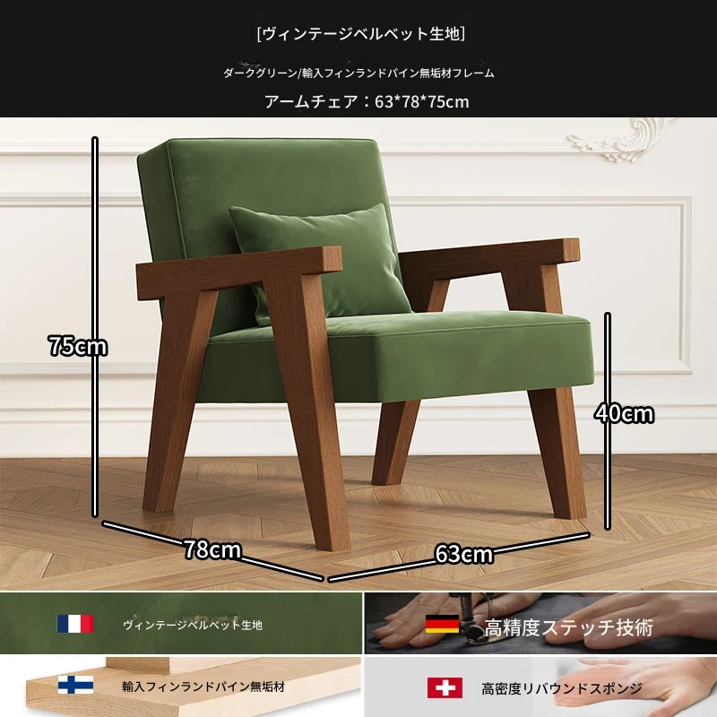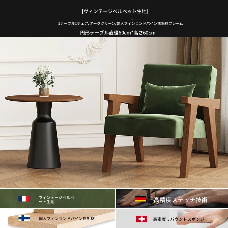 1テーブル1チェア+円卓:60cm【ダークグリーンベルベット】