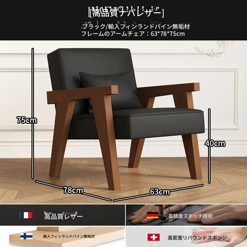 1テーブル1チェア+円卓:60cm【黒ナパレザー】