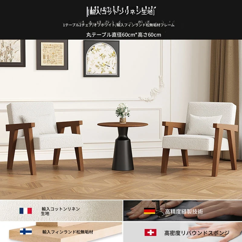 1テーブル2チェア+円卓:60cm【アイボリーコットンリネン】