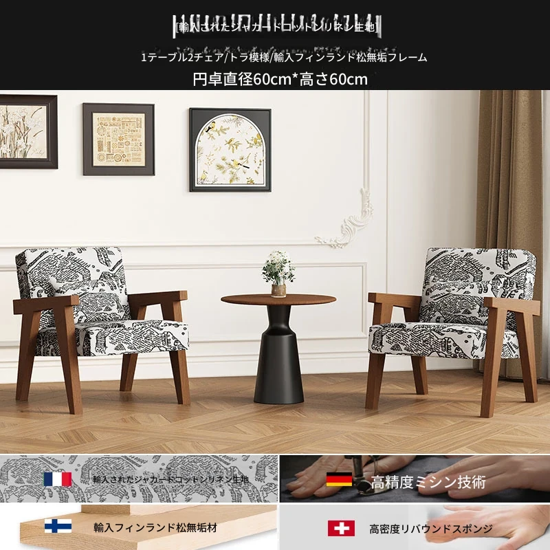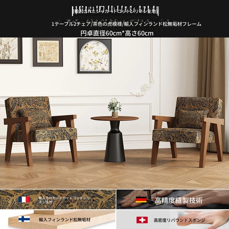 1テーブル2チェア+円卓:60cm【虎柄ジャガードコットンリネン】