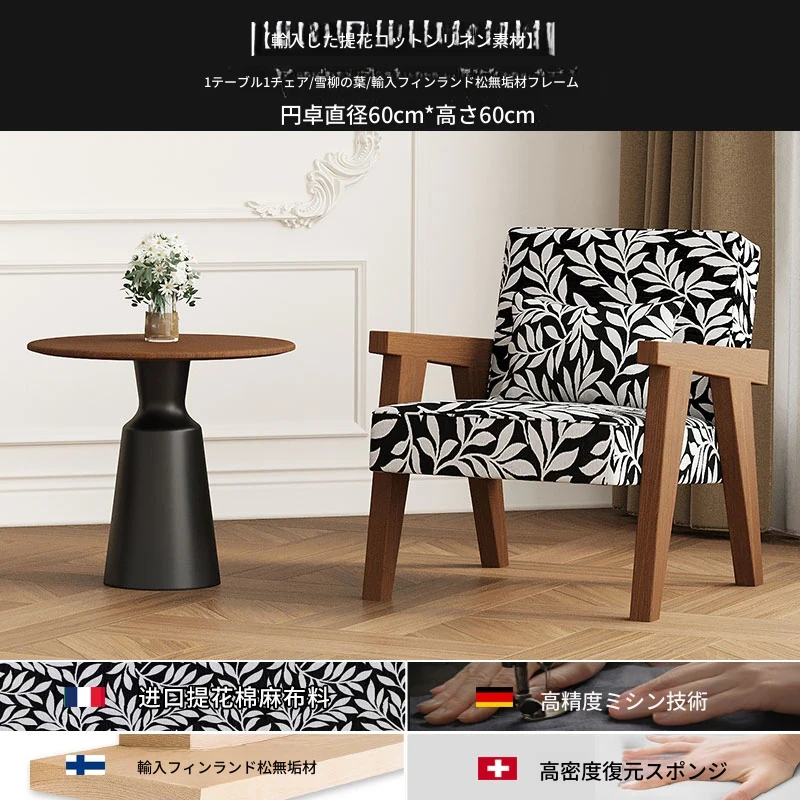 1テーブル1チェア+円卓:60cm【雪柳葉ジャガードコットンリネン】