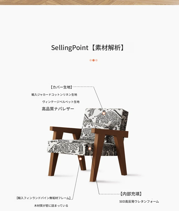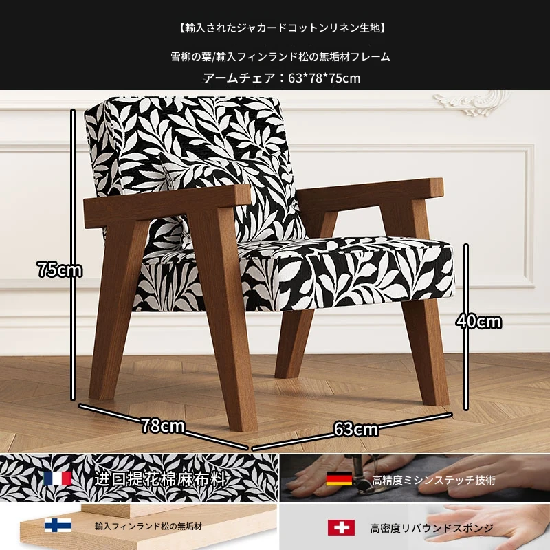 雪柳葉ジャガードコットンリネン/無垢材フレーム