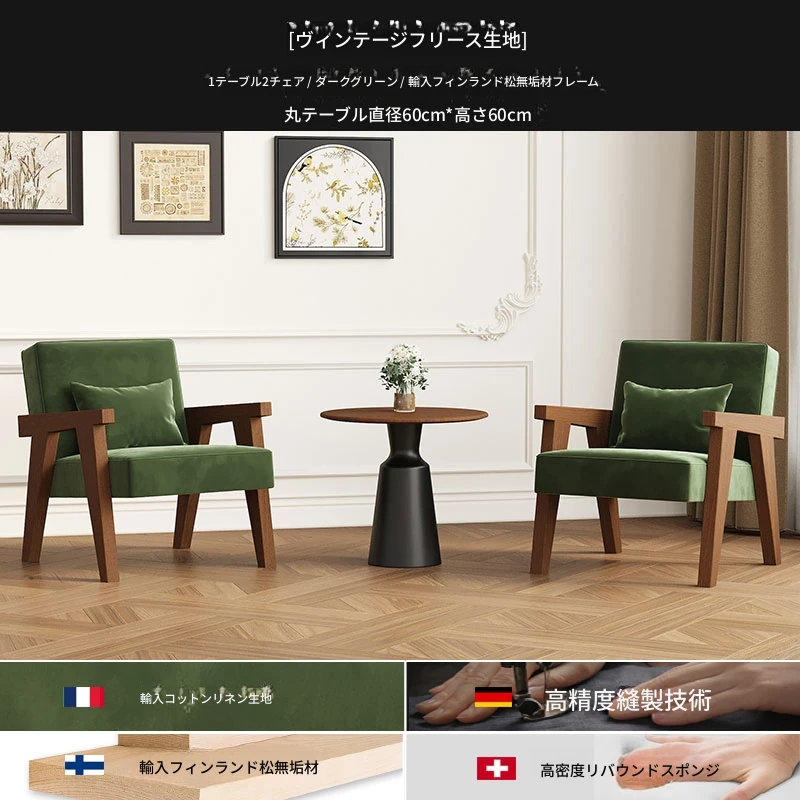 1テーブル2チェア+円卓:60cm【ダークグリーンベルベット】