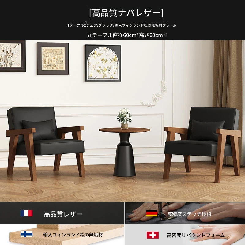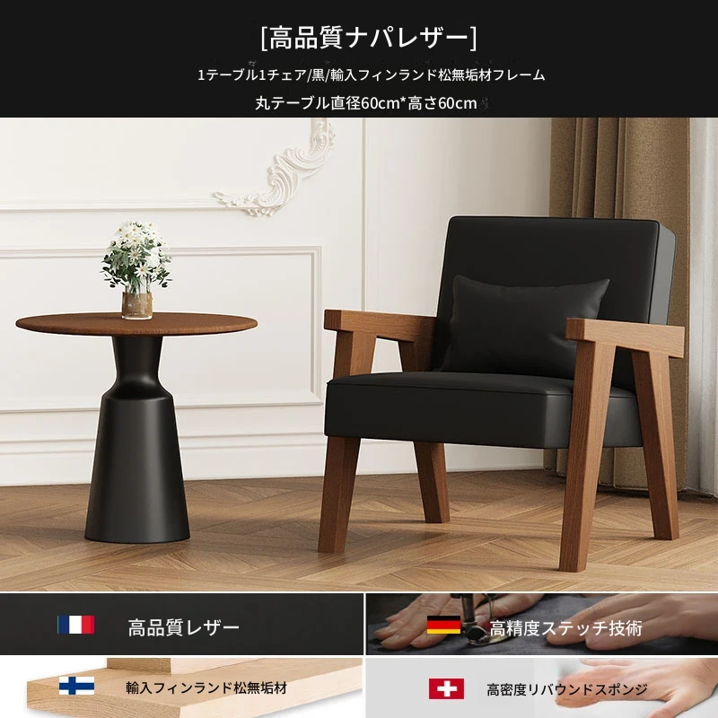 1テーブル2チェア+円卓:60cm【黒ナパレザー】
