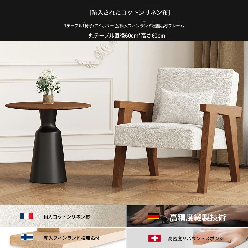 1テーブル1チェア+円卓:60cm【アイボリーコットンリネン】