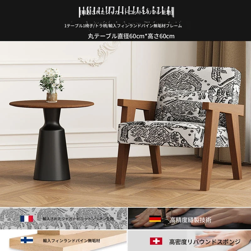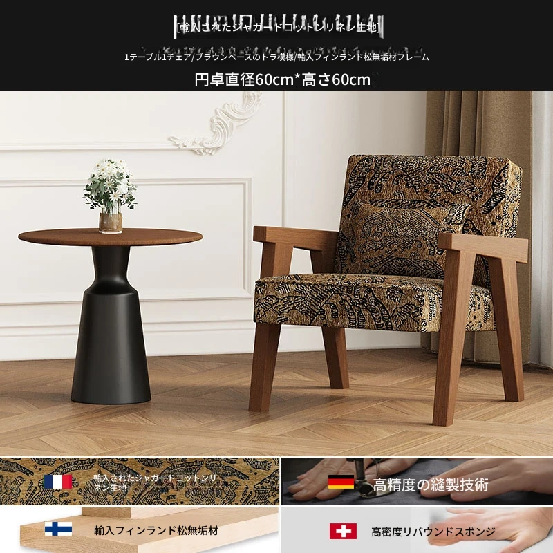 1テーブル1チェア+円卓:60cm【虎柄ジャガードコットンリネン】