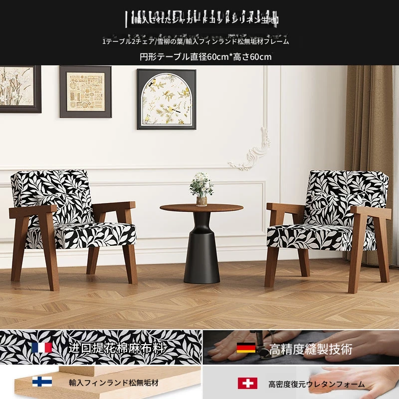 1テーブル2チェア+円卓:60cm【雪柳葉ジャガードコットンリネン】