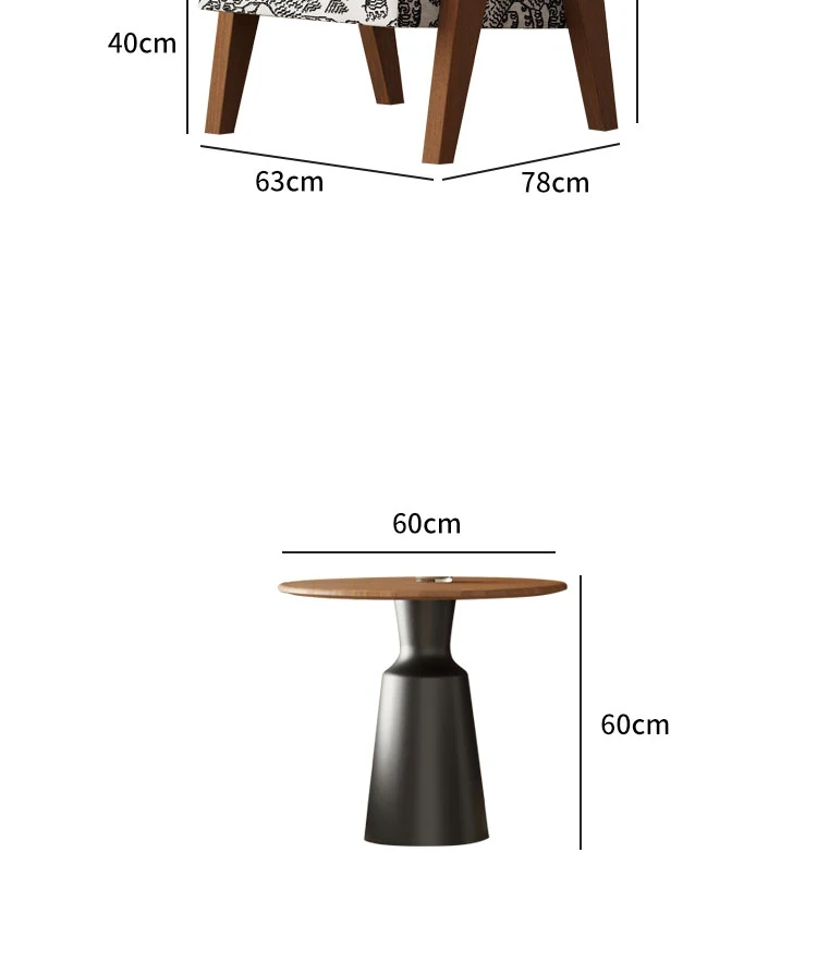 1テーブル1チェア+円卓:60cm【茶色底虎柄ジャガードコットンリネン】