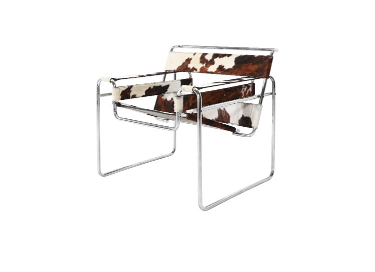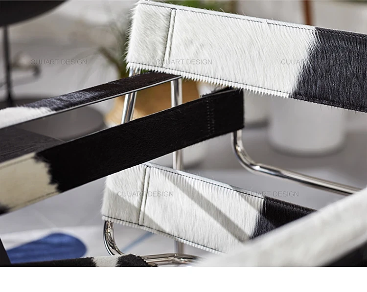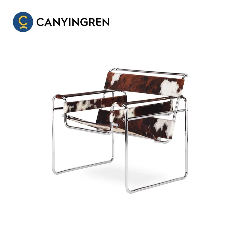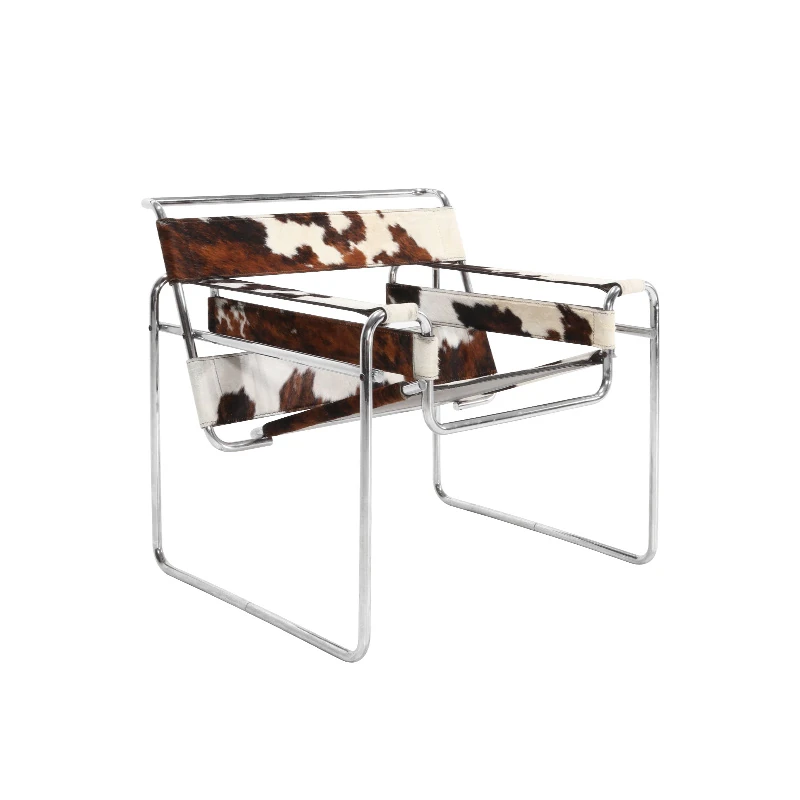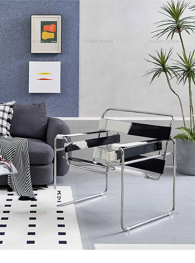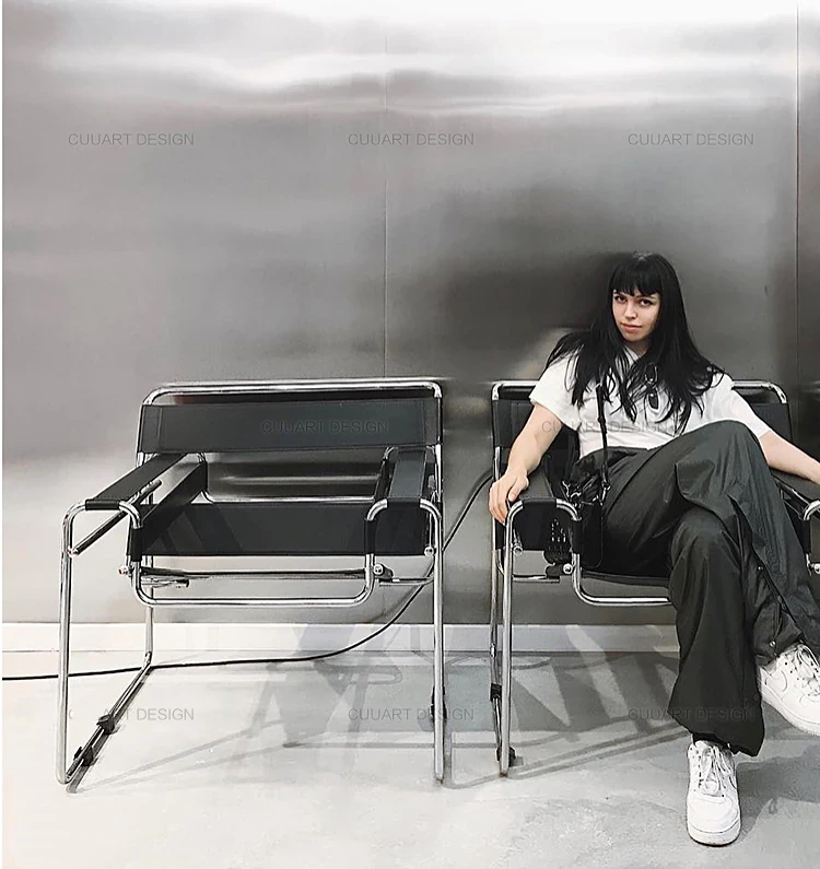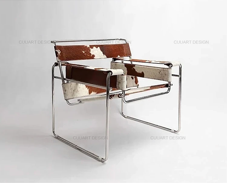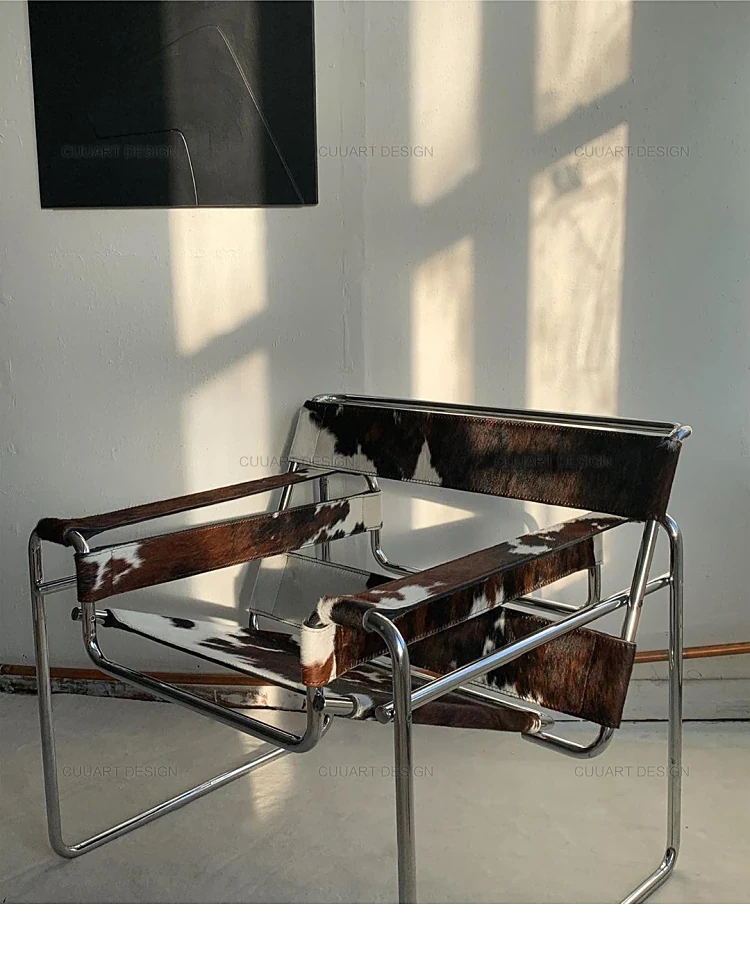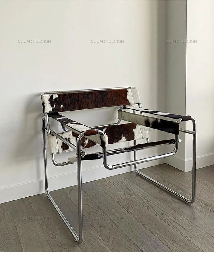 一人用ソファチェア・ワッシリー椅子 - 牛革×ステンレスのヴィンテージデザイン、ミーティングやリラックスに最適なアイテム!